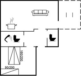 Der er i alt 1 soveværelse. Sovepladserne fordeler sig på: 2 sovepladser i dobbeltseng. 1 soveplads i enkeltseng. 2 sovepladser i sovesofa (dobbelt). 2 af disse sovepladser befinder sig i stuen.