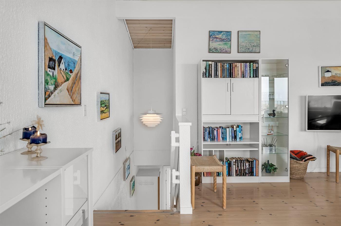 Smagfuldt indrettet lejlighed i 2 plan med havudsigt fra stuen på 1 sal. til lejligheden hører en flot altan på 16 m2 med panoramaudsigt over havet.