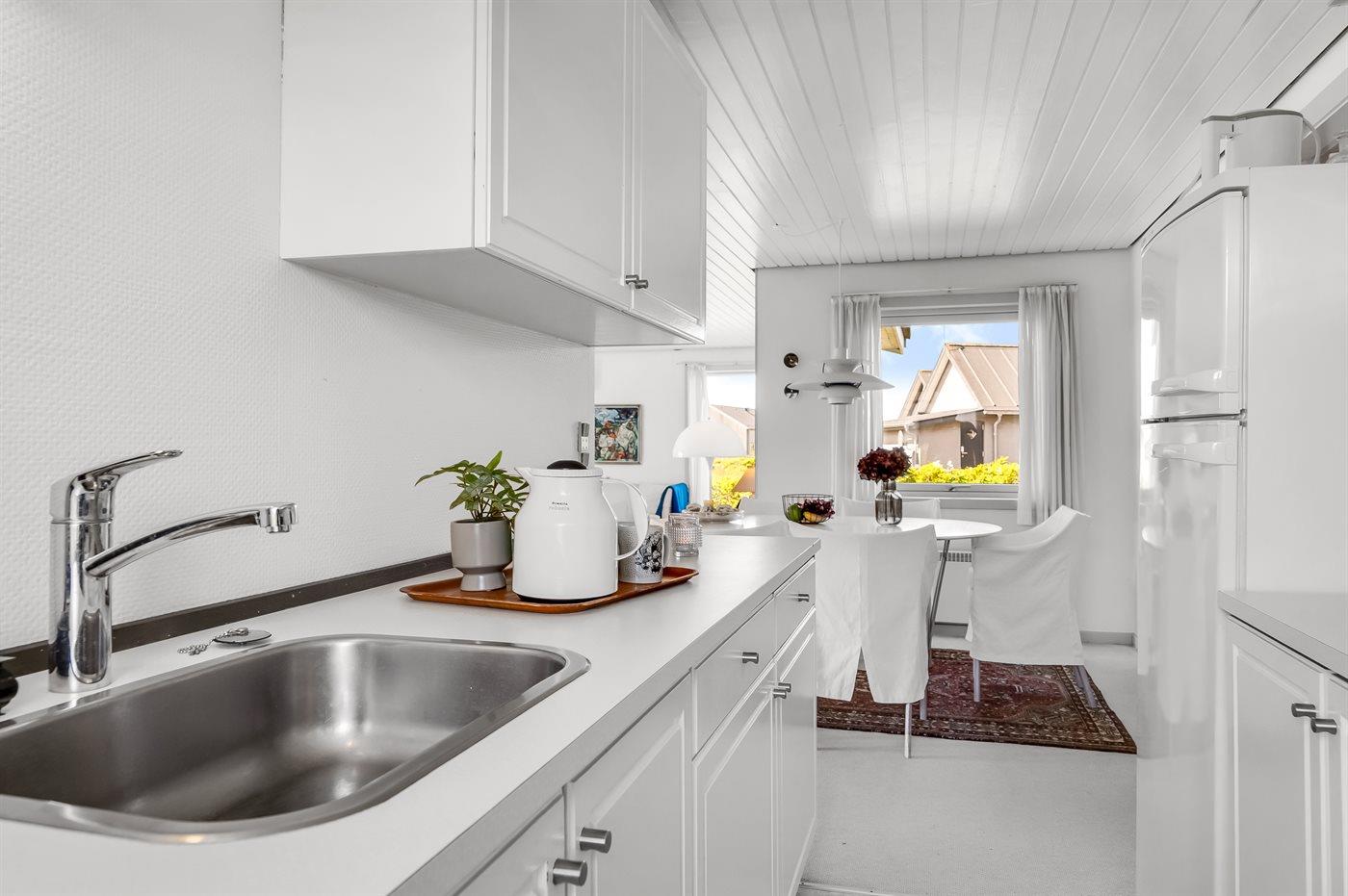 Køkkenet er udstyret med 1 køleskab. Der er 4 keramiske kogeplader, varmluftovn, mikrobølgeovn samt opvaskemaskine.