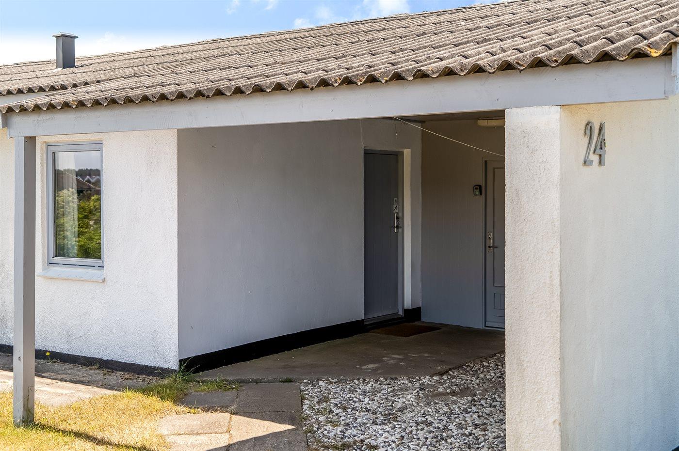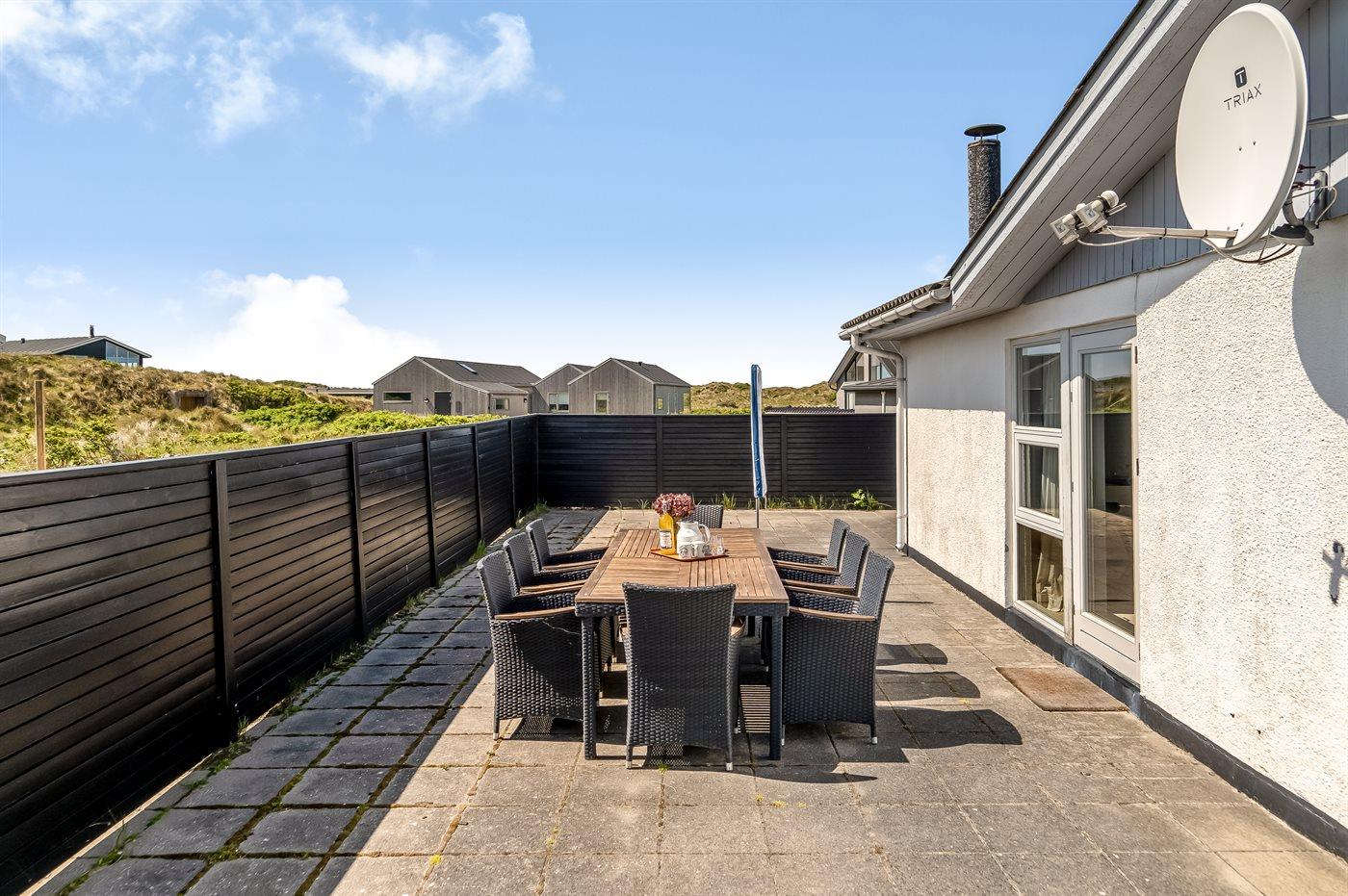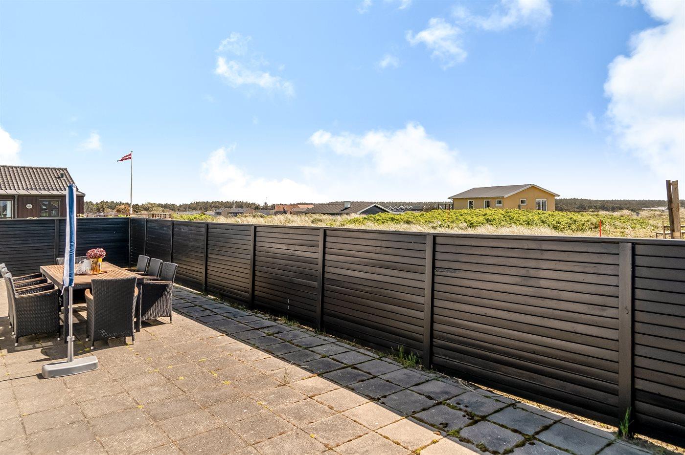 Ferieboligen er beliggende på en 1000 m² stor naturgrund. Der er 100 m til havet. Nærmeste forretning er beliggende i en afstand af 600 m. Heraf i alt 55 m² lukket terrasse. Der er redskabsrum. Parkering ved ferieboligen.