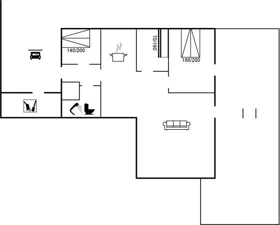 Der er i alt 3 soveværelser. Sovepladserne fordeler sig på: 4 sovepladser i dobbeltsenge. 2 sovepladser i køjeseng.