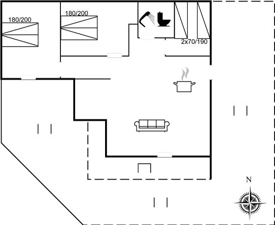 Der er i alt 3 soveværelser. Sovepladserne fordeler sig på: 4 sovepladser i dobbeltsenge. 2 sovepladser i enkeltsenge. Derudover er der 1 stk. barneseng.