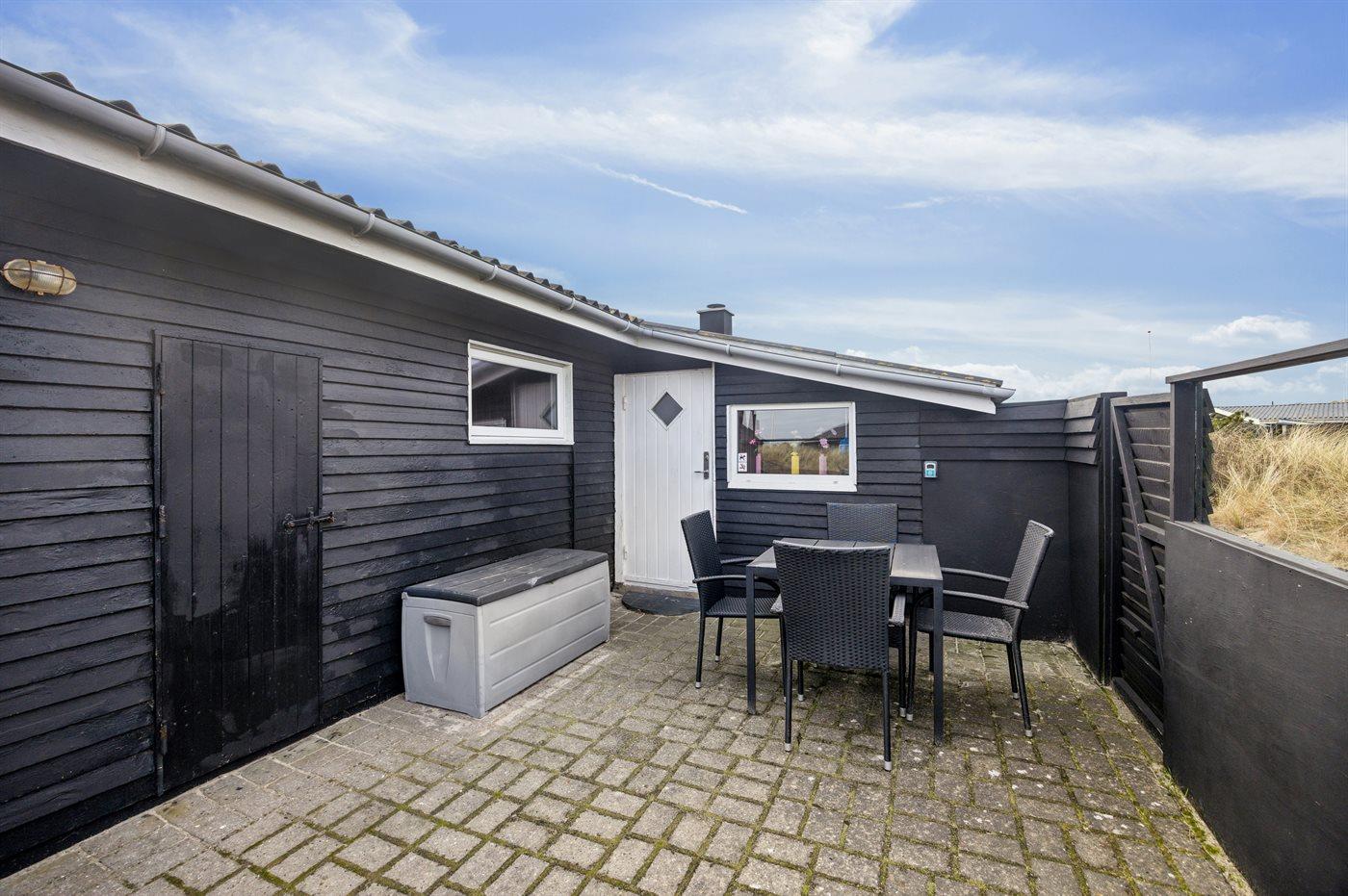 Ferieboligen er beliggende på en 300 m² stor naturgrund. Der er 250 m til havet. Nærmeste forretning er beliggende i en afstand af 1000 m. Heraf i alt 35 m² lukket terrasse. Parkering ved ferieboligen.