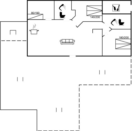 Der er i alt 3 soveværelser. Sovepladserne fordeler sig på: 4 sovepladser i dobbeltsenge. 1 soveplads i enkeltseng.