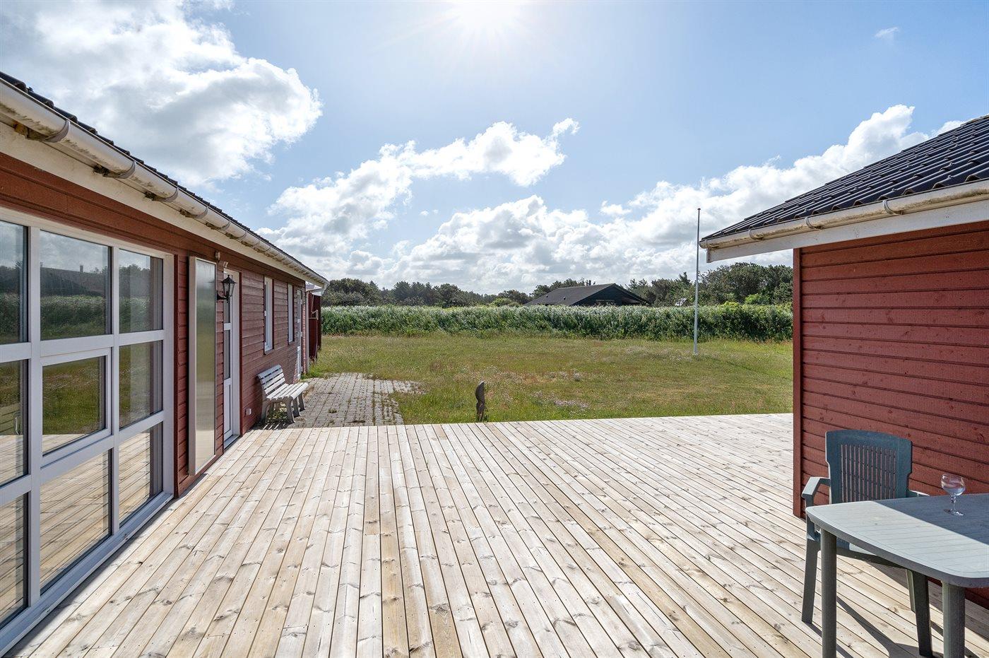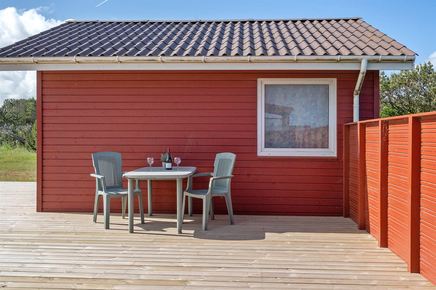Ferieboligen er beliggende på en 2500 m² stor naturgrund. Der er 500 m til havet. Nærmeste forretning er beliggende i en afstand af 2000 m. Til ferieboligen hører 60 m² terrasseareal. Desuden er der 4 m² overdækket terrasse. Der er redskabsrum. Der er carport til rådighed. Parkering ved ferieboligen.