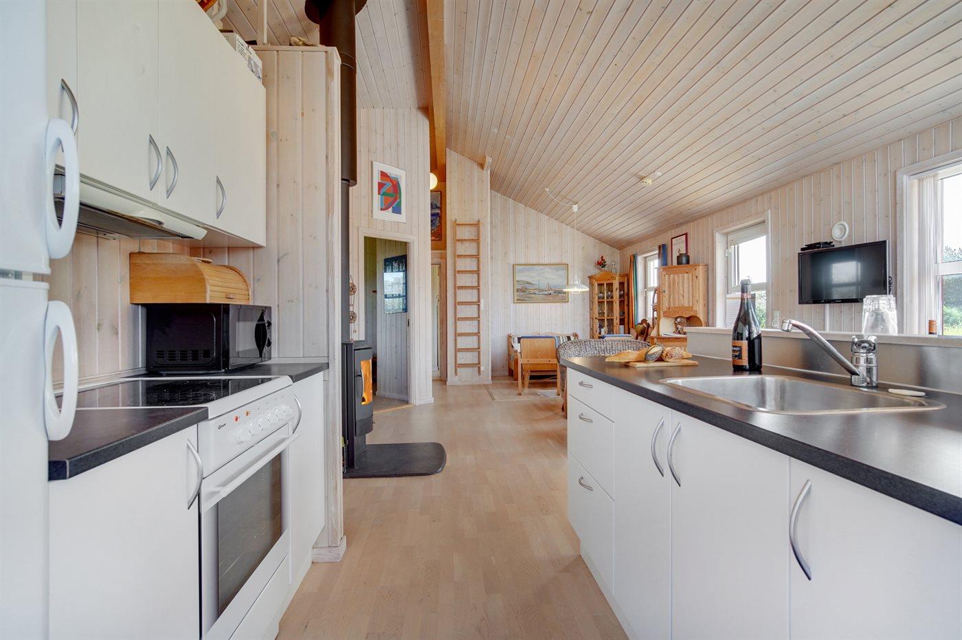 Køkkenet er udstyret med 1 køleskab. Der er 4 keramiske kogeplader, varmluftovn, mikrobølgeovn.