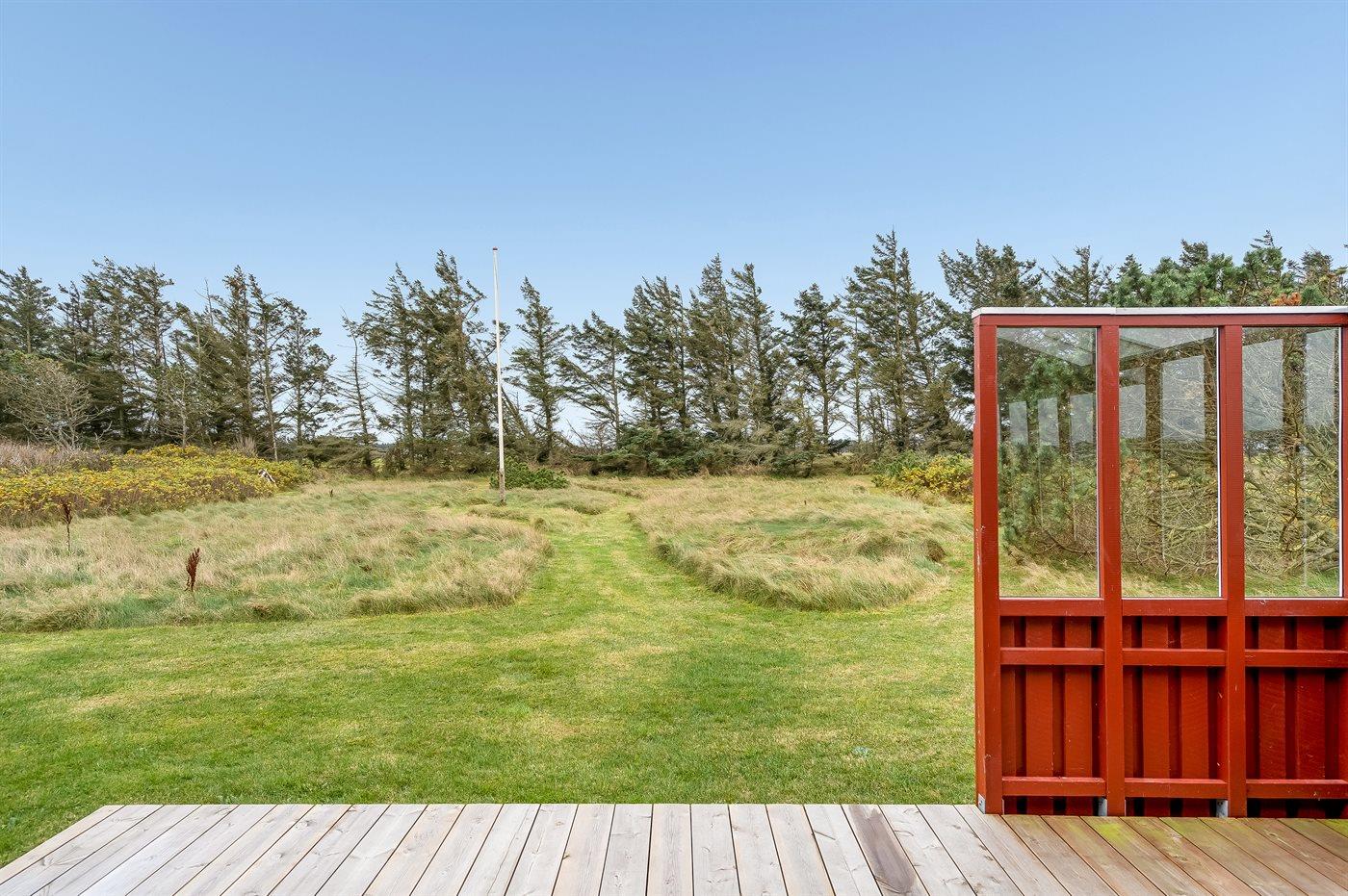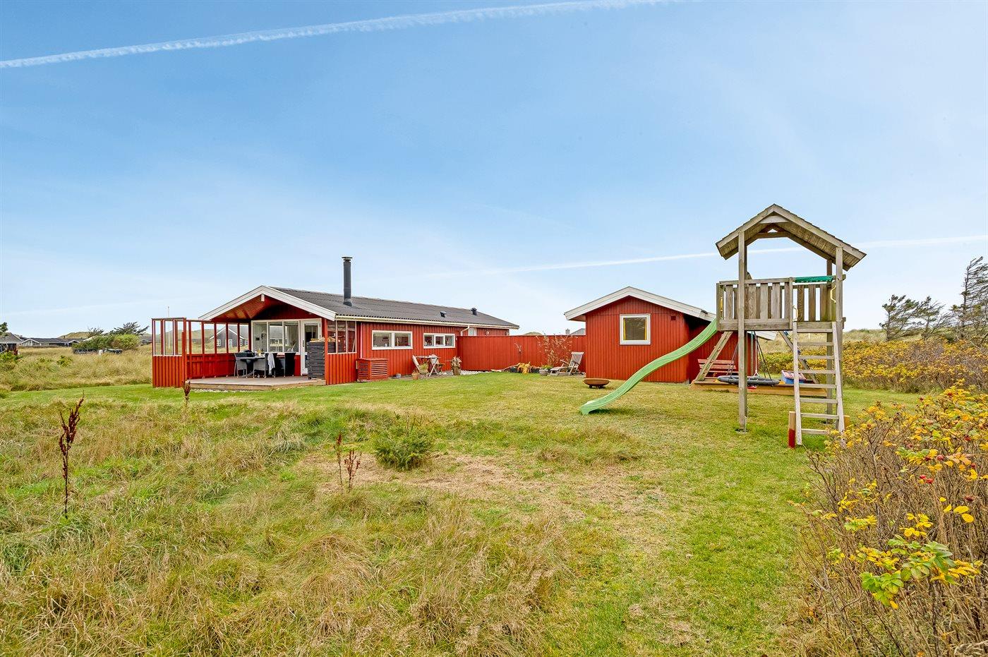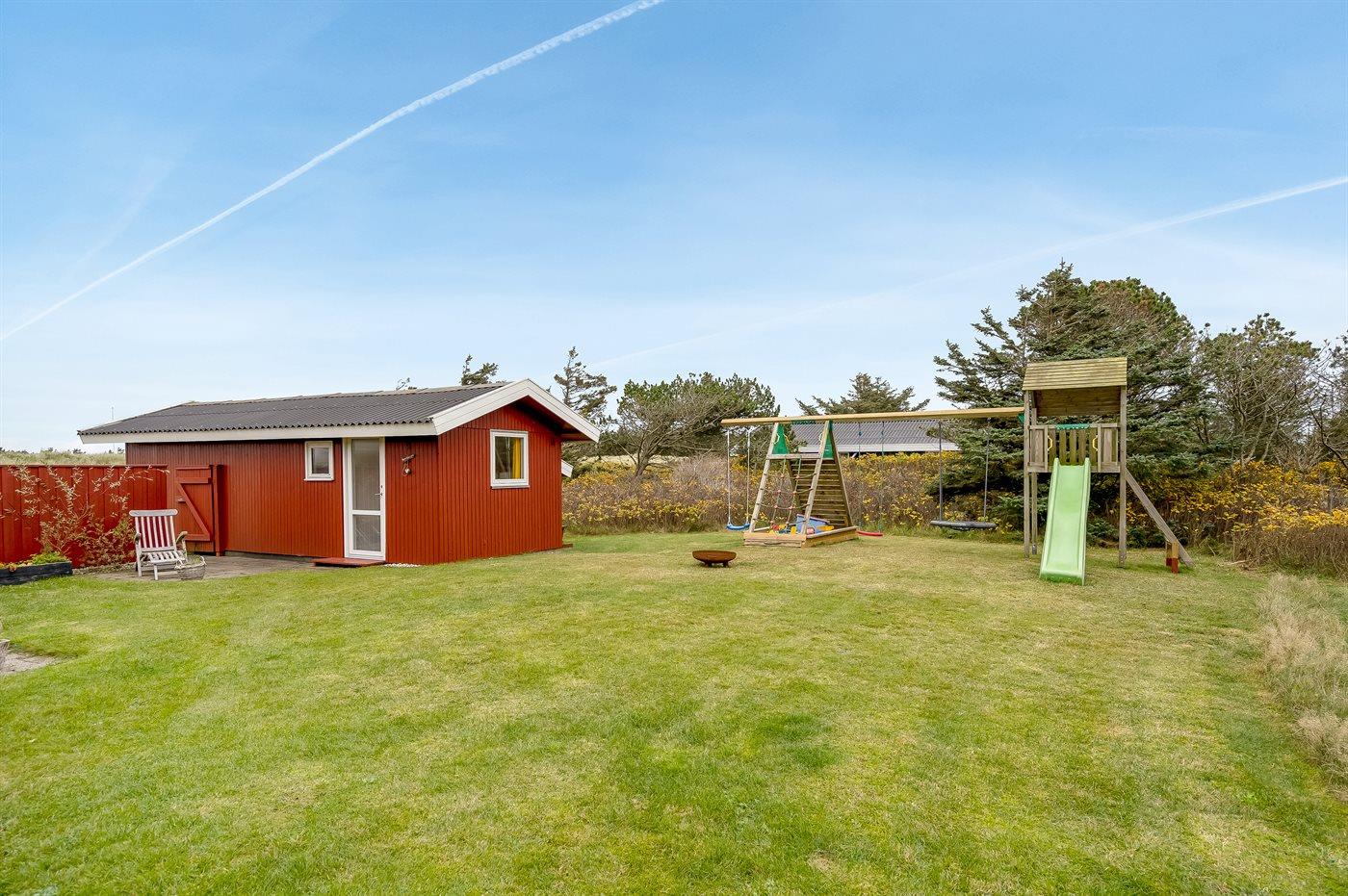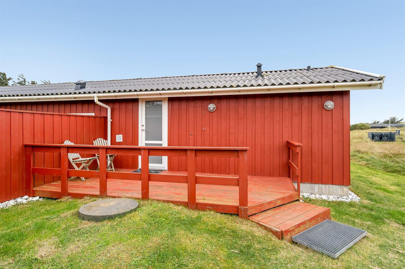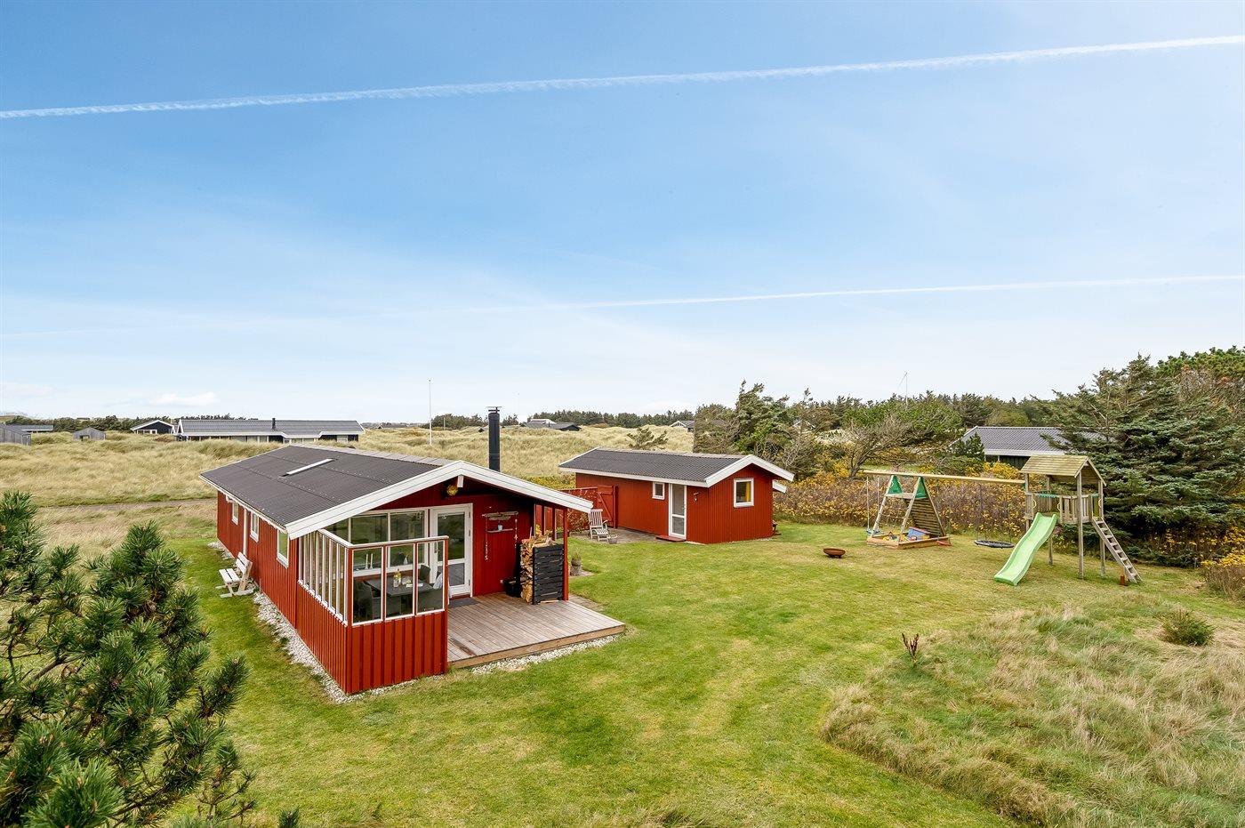 Ferieboligen er beliggende på en 2706 m² stor naturgrund. Der er 500 m til havet. Nærmeste forretning er beliggende i en afstand af 2500 m. Til ferieboligen hører åbent terrasseareal. Desuden er der overdækket terrasse. Gynge. Sandkasse. Legetårn. Rutchebane. Shelter. Parkering ved ferieboligen.