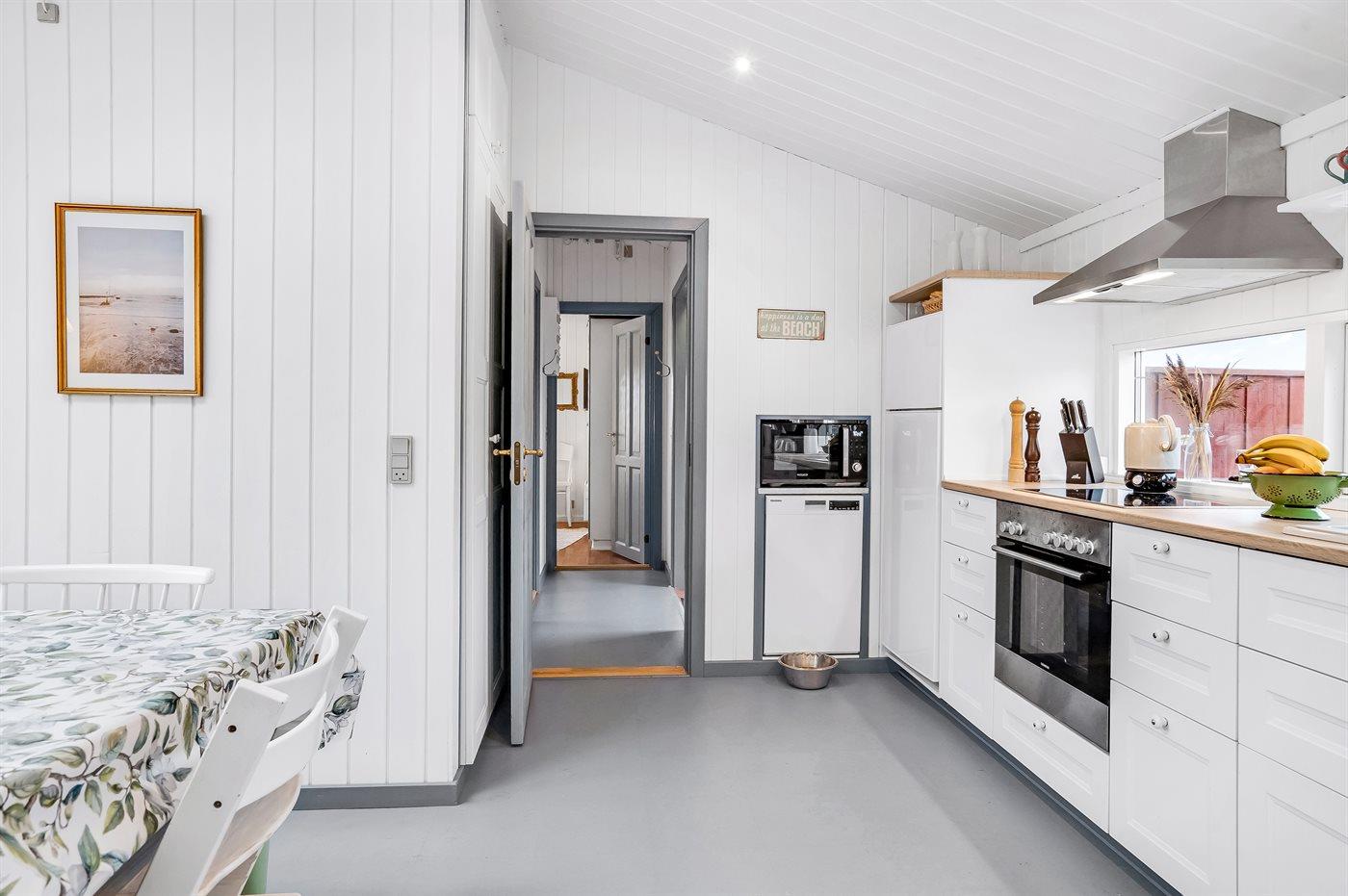 Køkkenet er udstyret med 1 køleskab. Der er 4 keramiske kogeplader, varmluftovn, mikrobølgeovn samt opvaskemaskine.