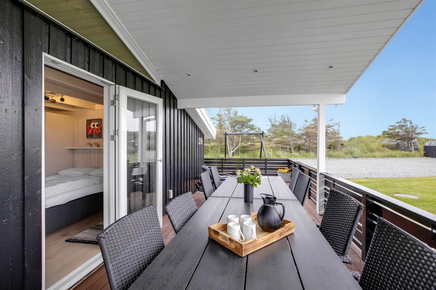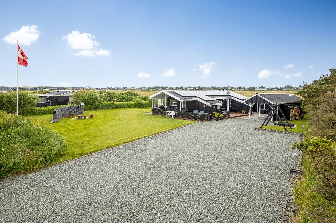 Ferieboligen er beliggende på en 1550 m² stor naturgrund. Der er 700 m til havet. Nærmeste forretning er beliggende i en afstand af 1800 m. Der er en golfbane i en afstand af 1900 m. Til ferieboligen hører 45 m² terrasseareal. Desuden er der 15 m² overdækket terrasse. Der er redskabsrum. Gynge. Sandkasse. Der er carport til rådighed. Der er installeret stik til opladning af elbil. Parkering ved ferieboligen.