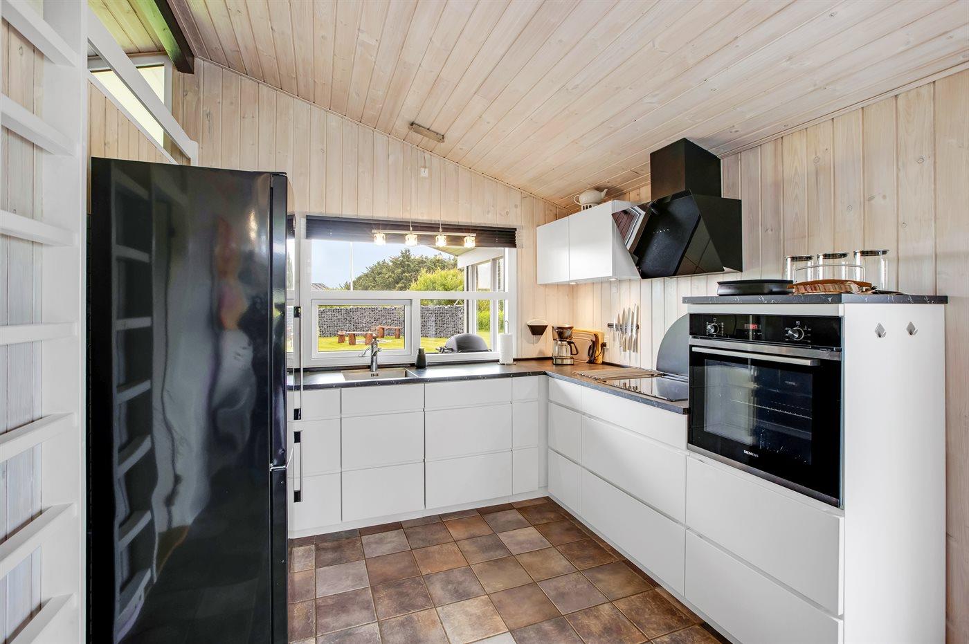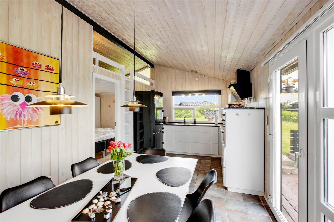 Køkkenet er udstyret med 1 køleskab. Der er 4 keramiske kogeplader, varmluftovn, mikrobølgeovn samt opvaskemaskine.