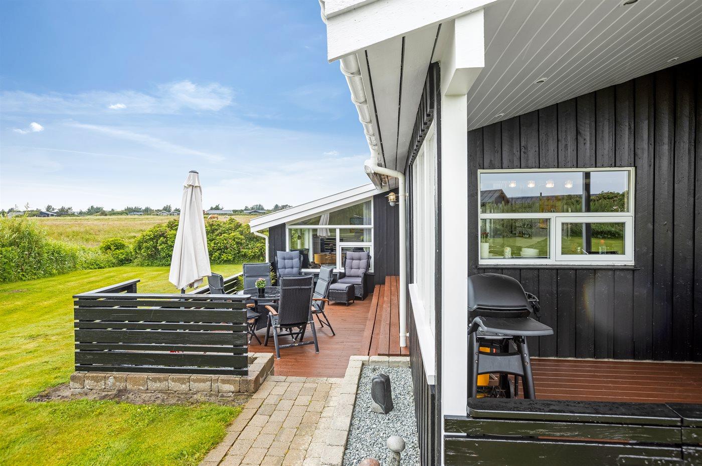 Flot og velholdt sommerhus med skønne terrasser beliggende tæt på Løkken by og den flotte sandstrand ved Vesterhavet. Huset ligger på en lukket vej ud til åbne naturarealer med en lille bæk løbende for enden af grunden, og indvendigt er huset indrettet lyst og indbydende med forsænket opholdsstue.