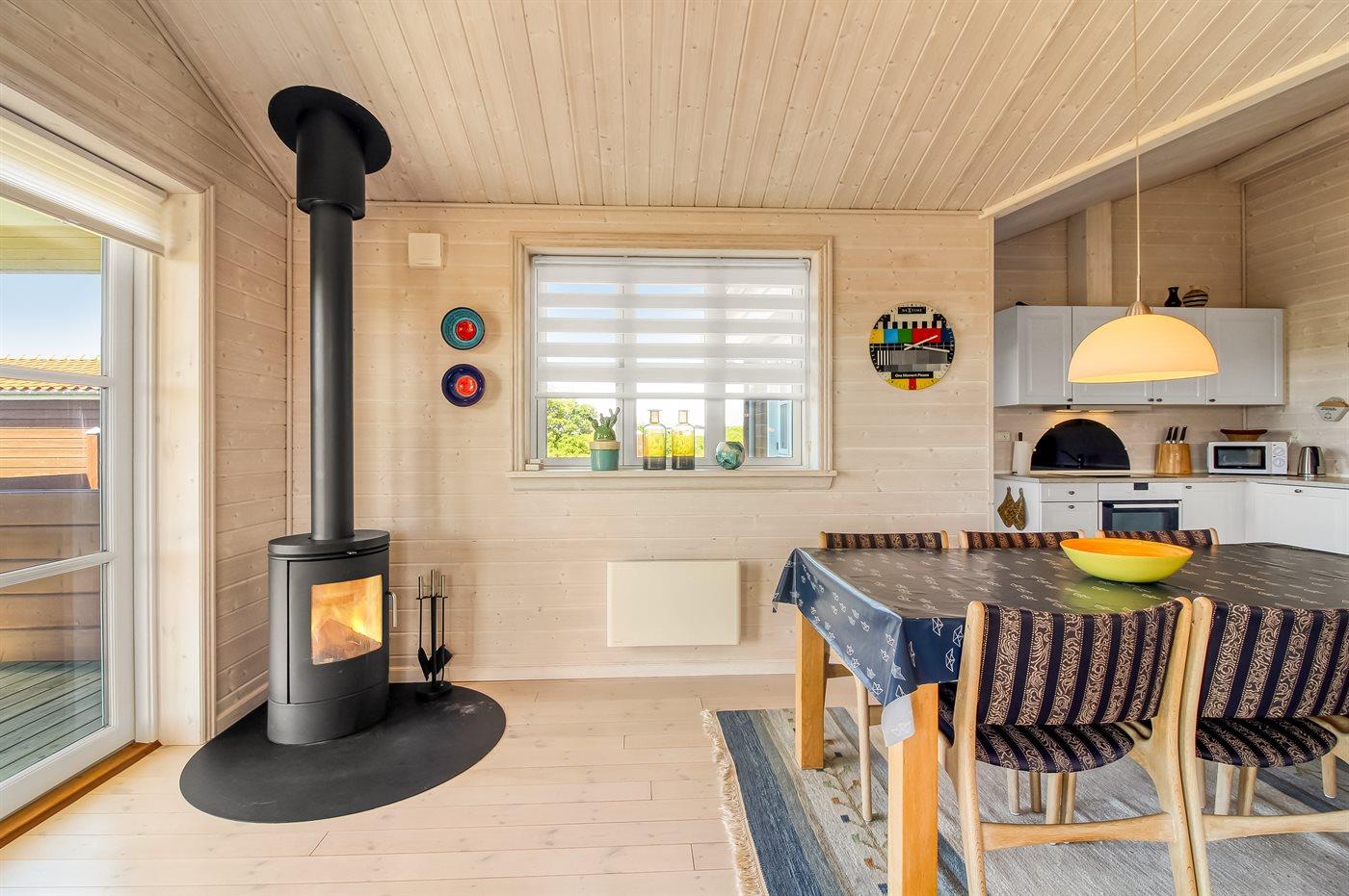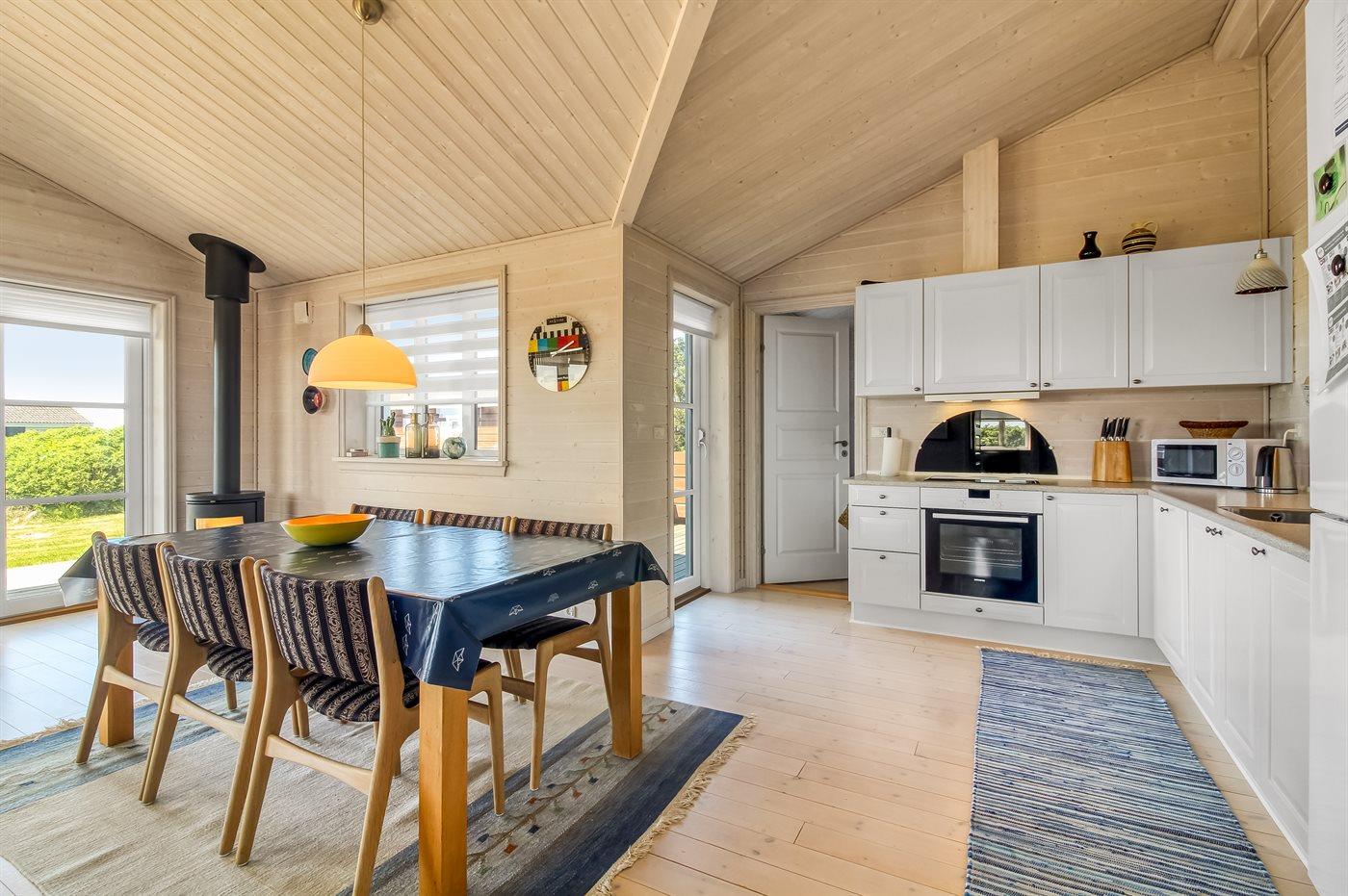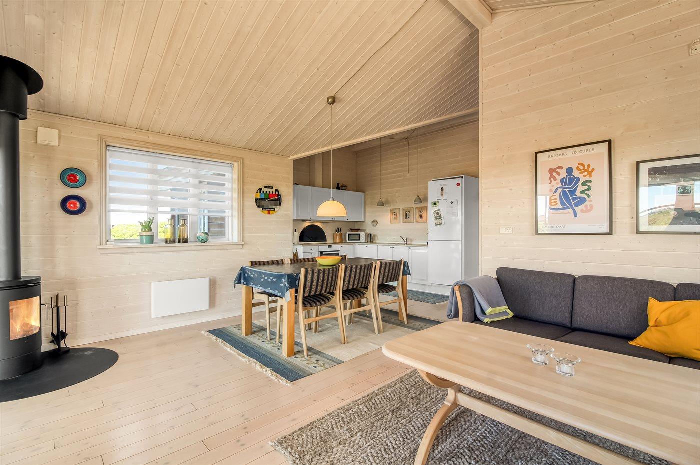 Sommerhuset egner sig til 6 personer. Ferieboligen er på 89 m² og er bygget i 2016. Det er ikke tilladt at medbringe husdyr. Ferieboligen er udstyret med energibesparende varmepumpe. Der er gulvvarme i alle klinkegulve. Ferieboligen har vaskemaskine. Tørretumbler. Frysekapacitet på 90 liter. Der er desuden brændeovn. Til de små er der 1 stk. barnestol.
