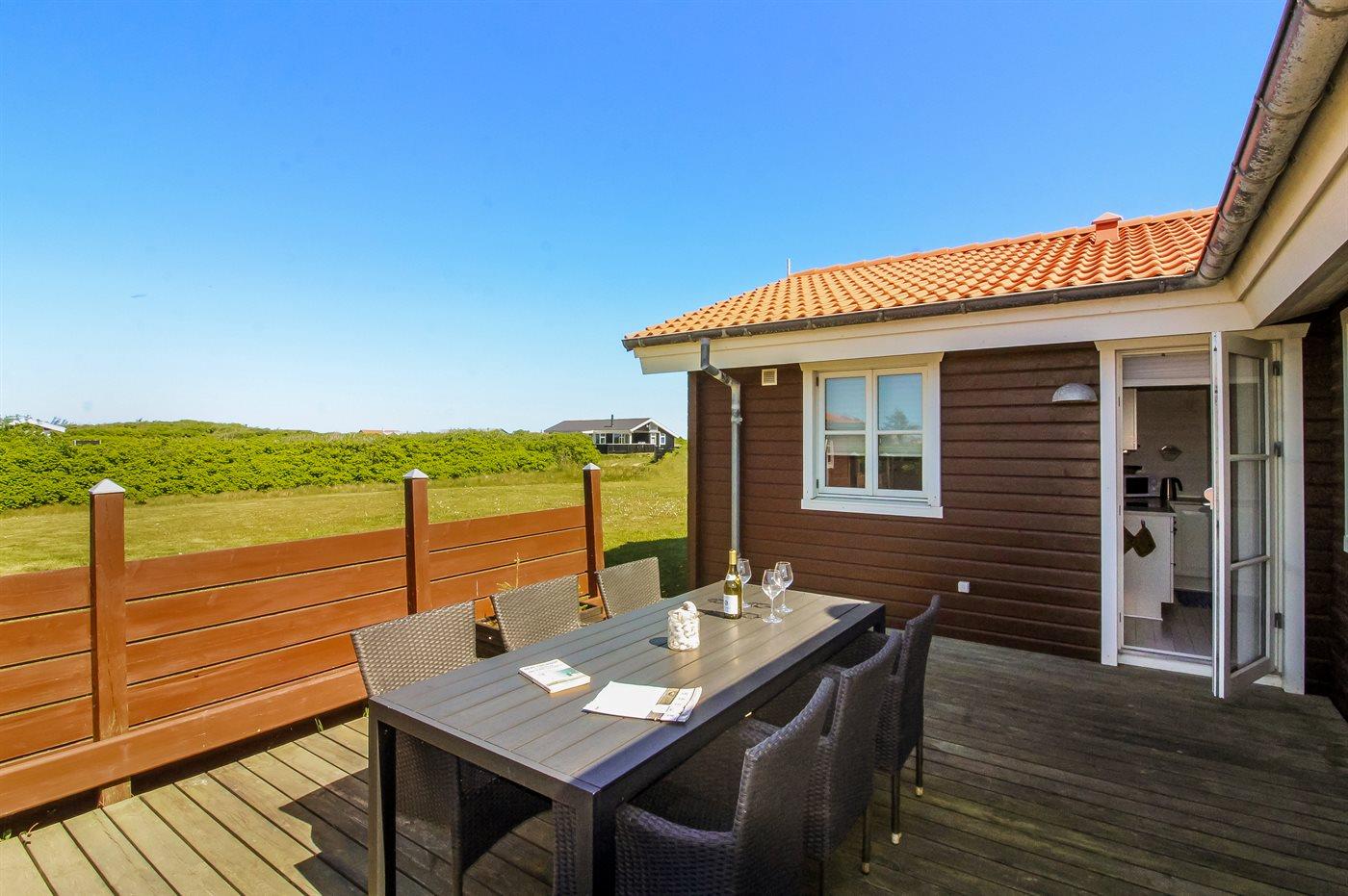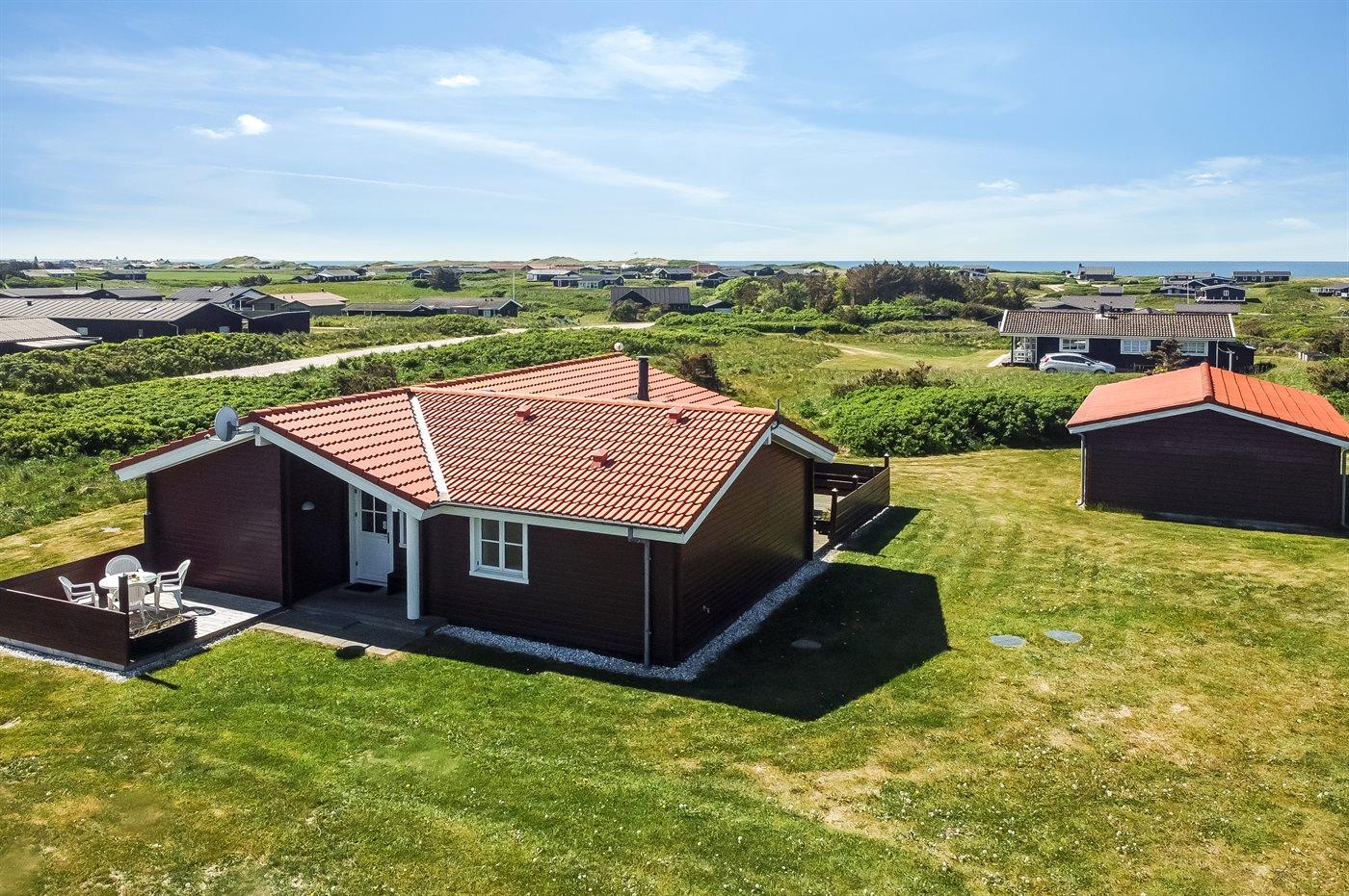 Ferieboligen er beliggende på en 2414 m² stor naturgrund. Der er 300 m til havet. Nærmeste forretning er beliggende i en afstand af 1500 m. Til ferieboligen hører 25 m² terrasseareal. Desuden er der 20 m² overdækket terrasse. Der er redskabsrum. Parkering ved ferieboligen.