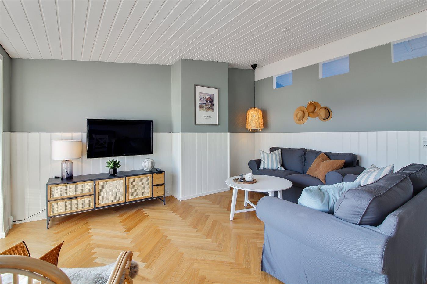 Ferielejligheden, som er bygget i 2 plan, er renoveret i 2023.