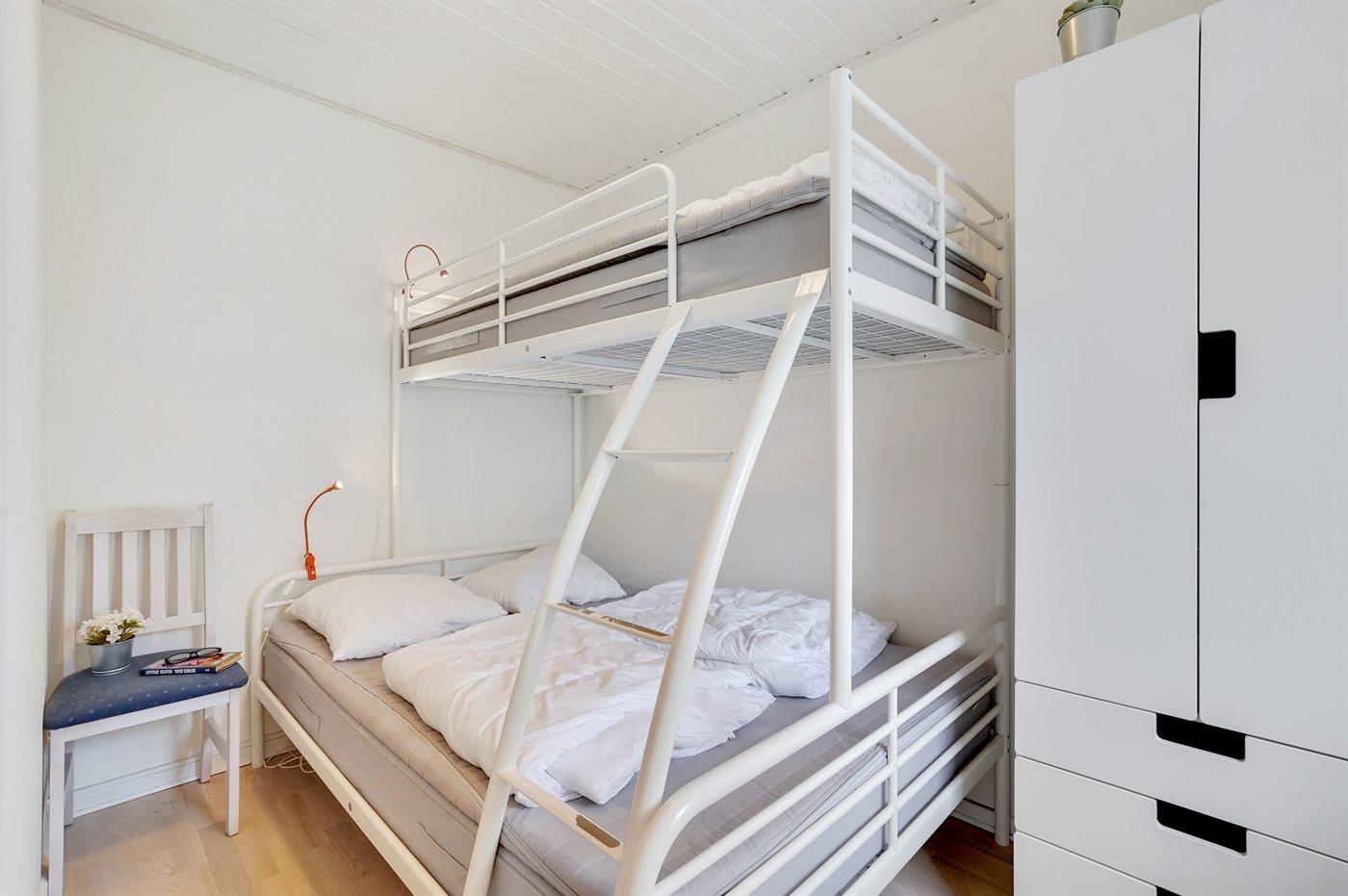 Der er i alt 2 soveværelser. Sovepladserne fordeler sig på: 2 sovepladser i dobbeltseng. 3 sovepladser i køjesenge.