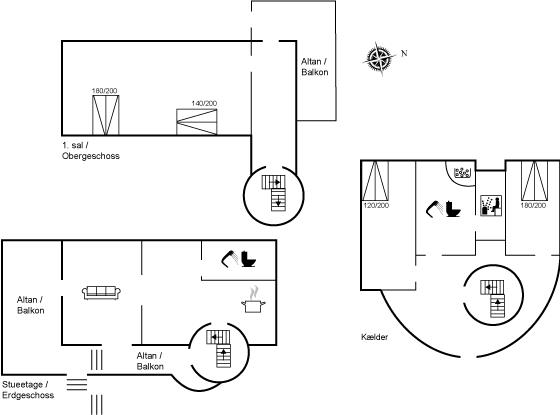 Der er i alt 3 soveværelser. Sovepladserne fordeler sig på: 8 sovepladser i dobbeltsenge. Derudover er der 1 stk. barneseng.