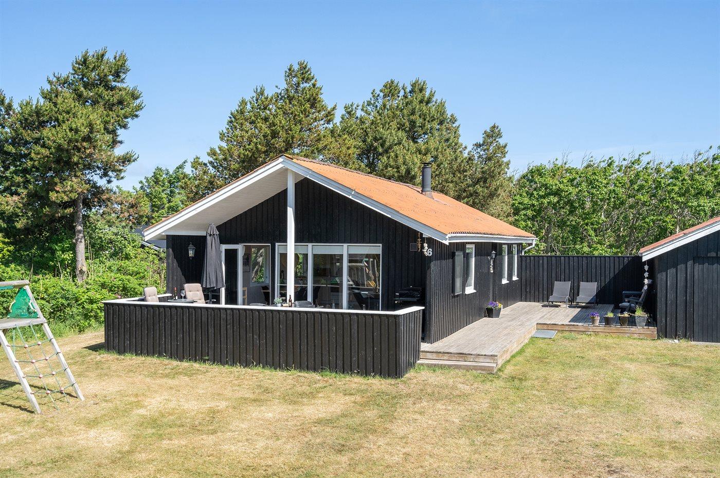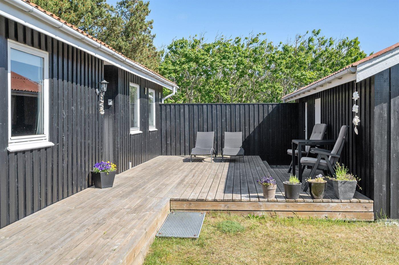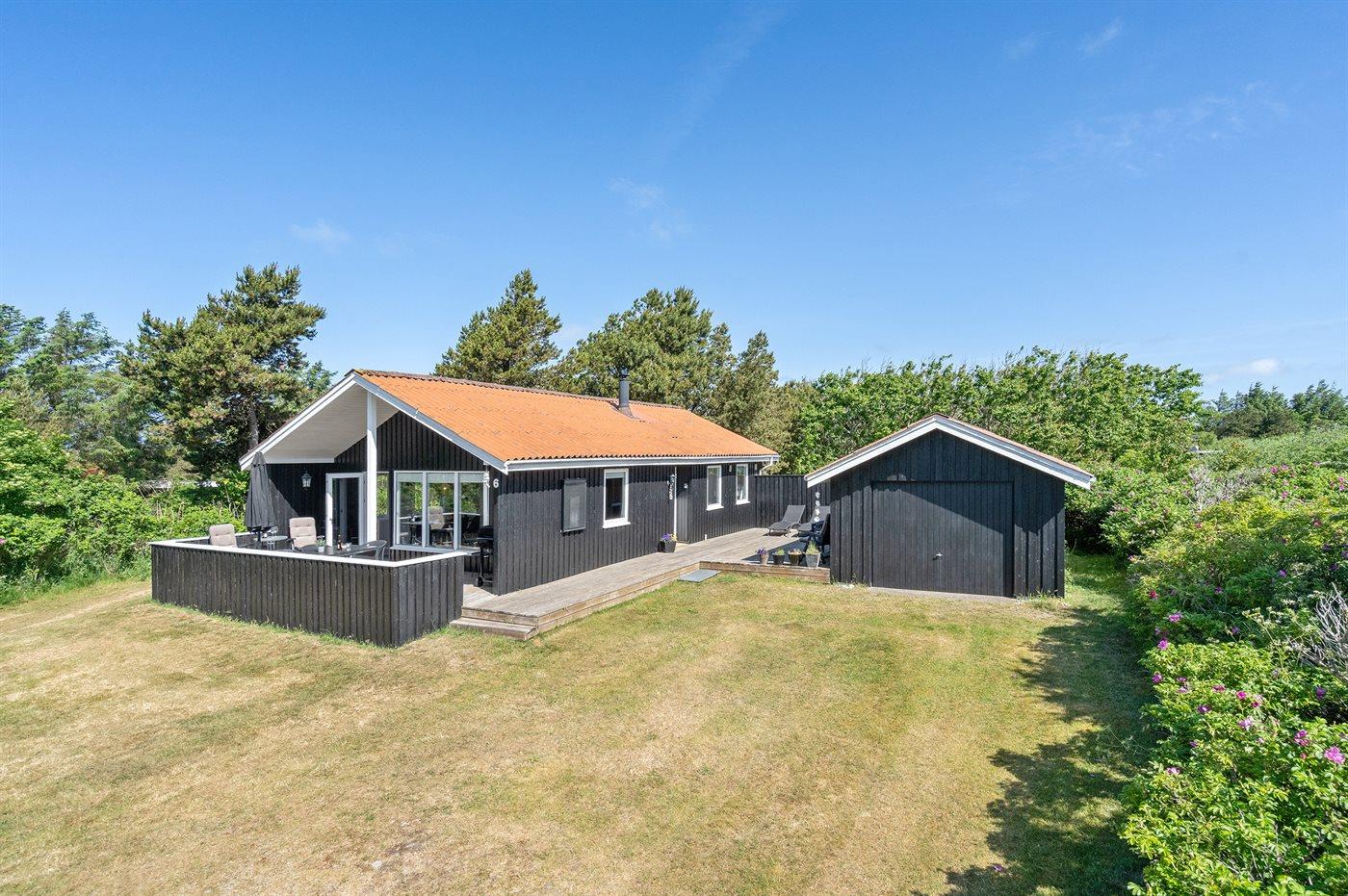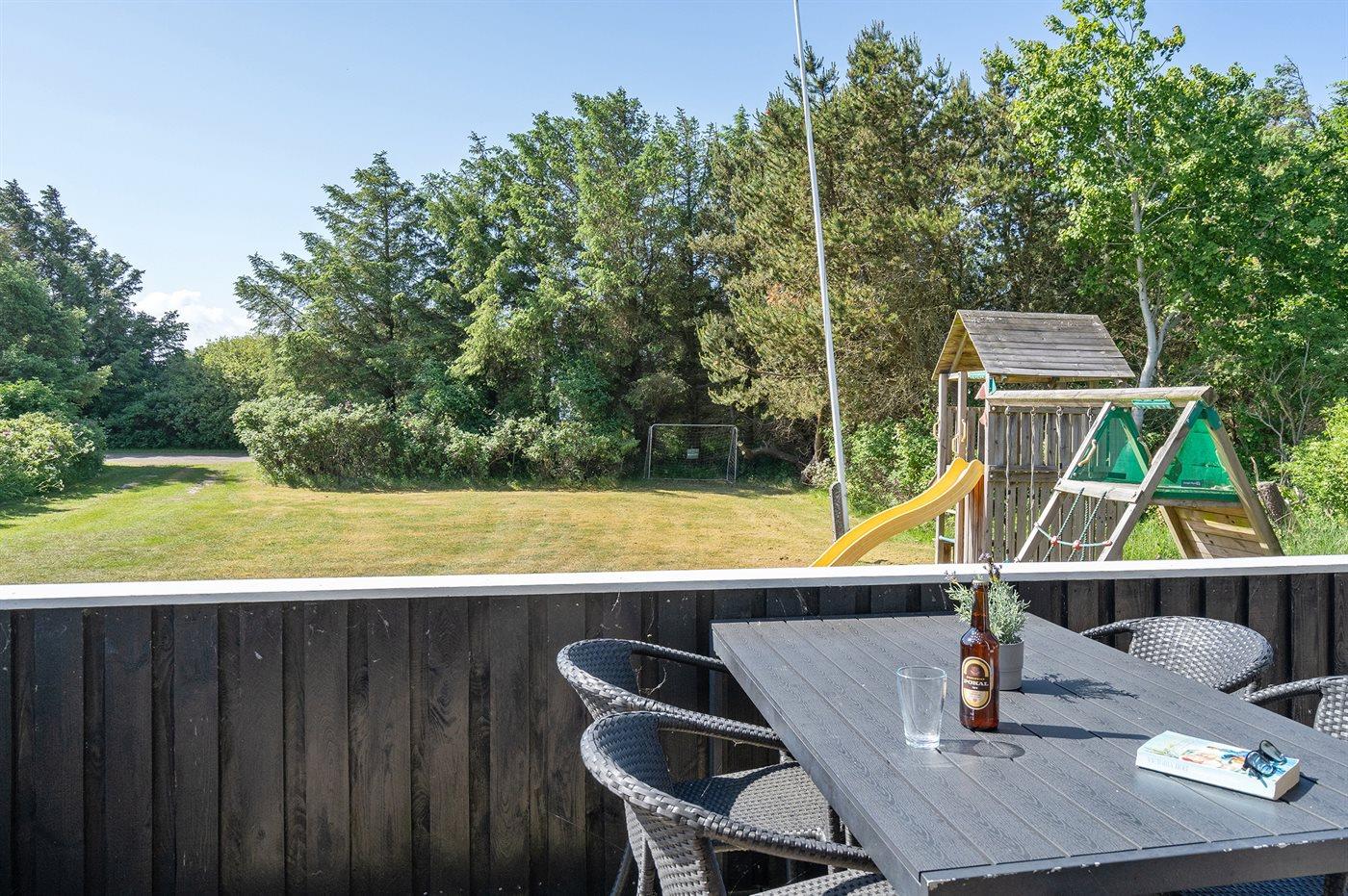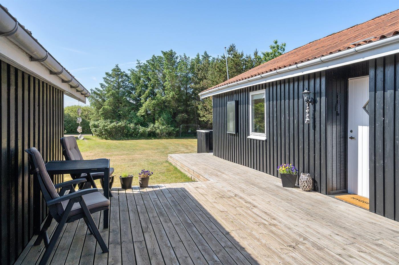 Ferieboligen er beliggende på en 1983 m² stor naturgrund. Der er 922 m til havet. Nærmeste forretning er beliggende i en afstand af 1600 m. Til ferieboligen hører 40 m² terrasseareal. Desuden er der 10 m² overdækket terrasse. Der er redskabsrum. Gynge. Rutchebane. Fodboldmål. Gasgrill står til rådighed. Parkering ved ferieboligen.