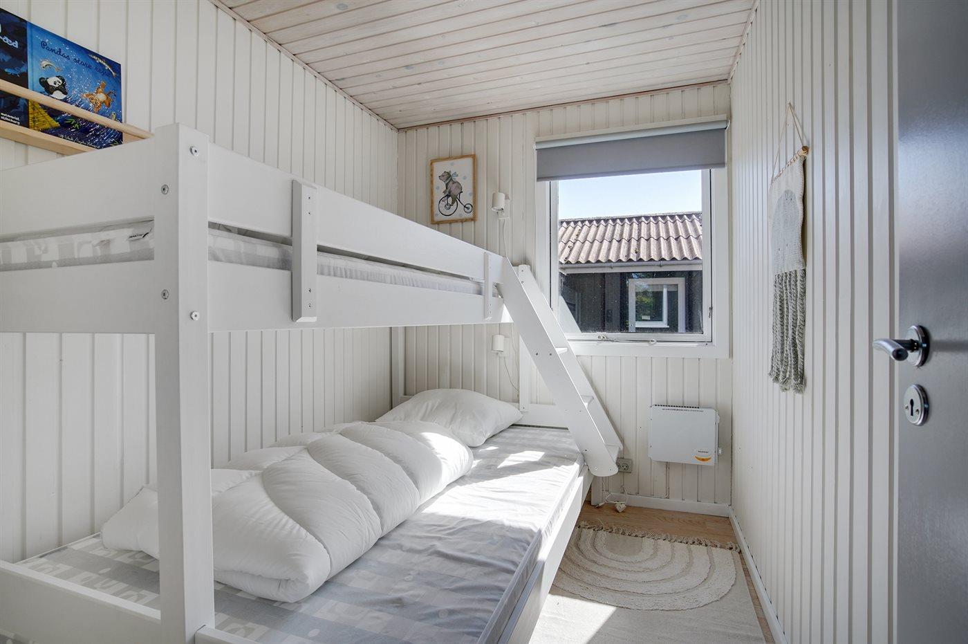 Der er i alt 4 soveværelser. Sovepladserne fordeler sig på: 6 sovepladser i dobbeltsenge. 1 soveplads i enkeltseng.1 soveplads i køjeseng.- 2 af disse sovepladser befinder sig i et anneks. Derudover er der 1 stk. barneseng.
