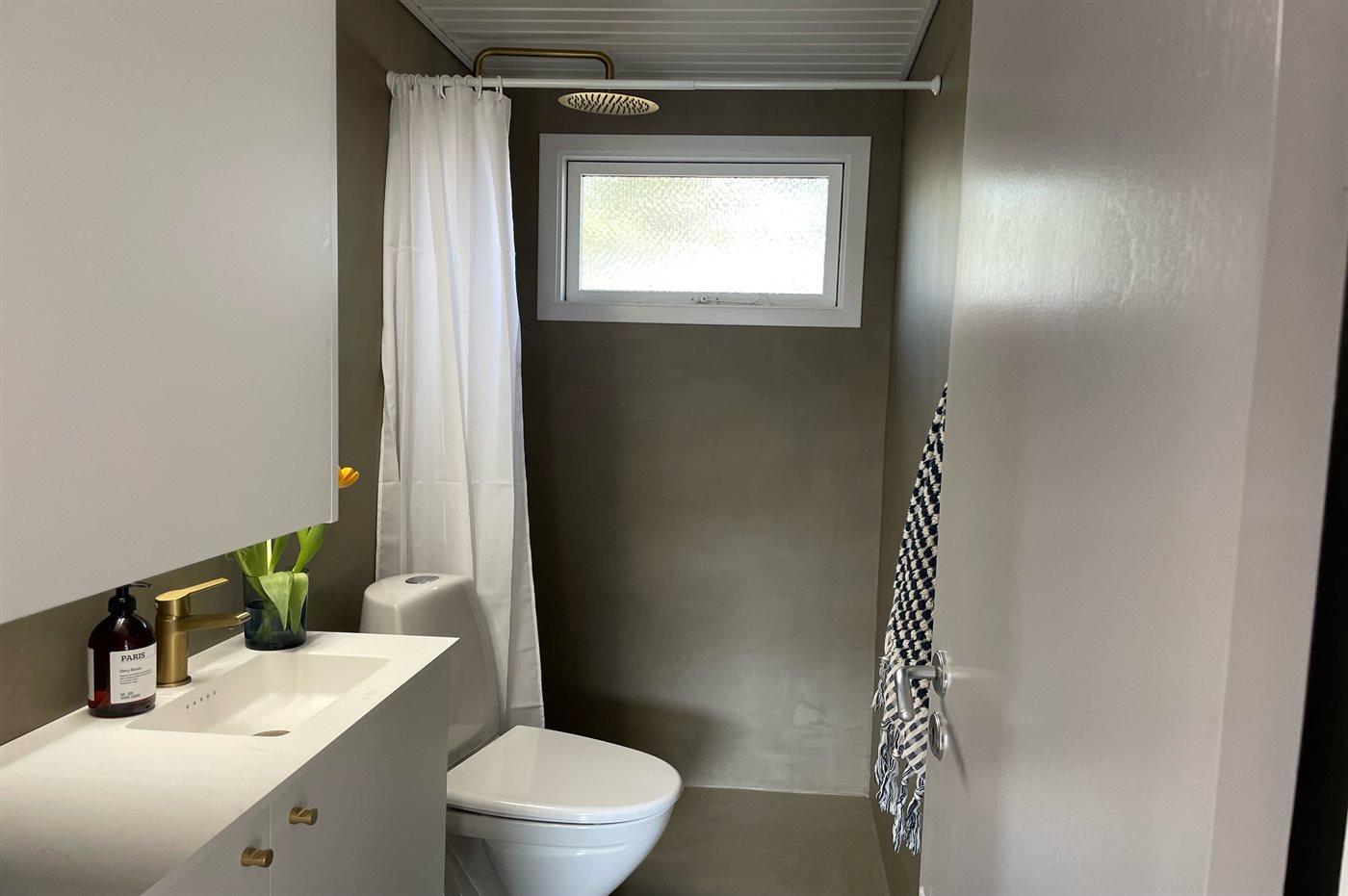 Der er 1 badeværelse med bruseniche og 1 toilet.