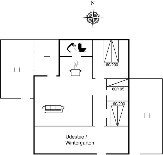 Der er i alt 2 soveværelser. Sovepladserne fordeler sig på: 4 sovepladser i dobbeltsenge. 1 soveplads i enkeltseng.