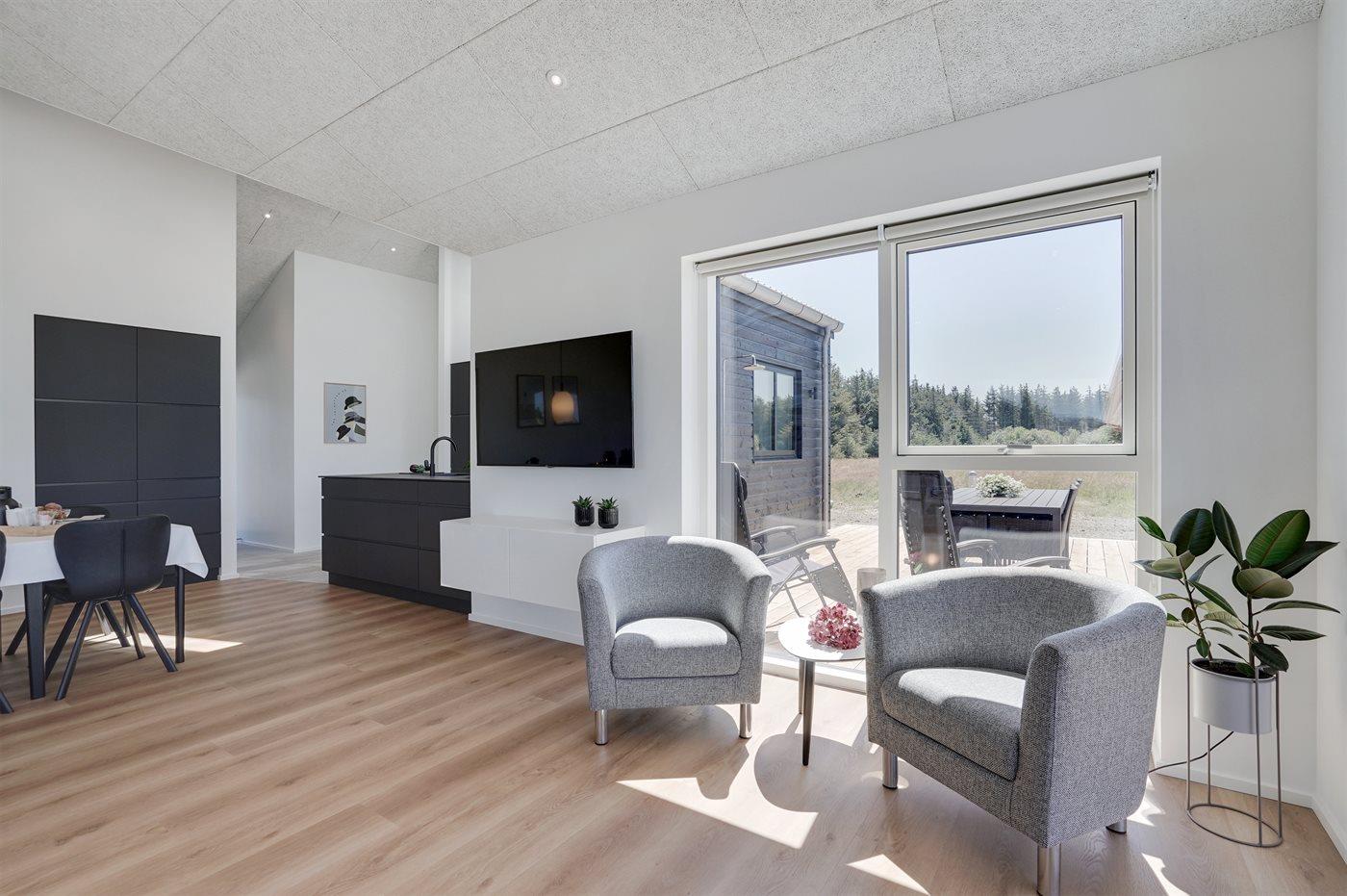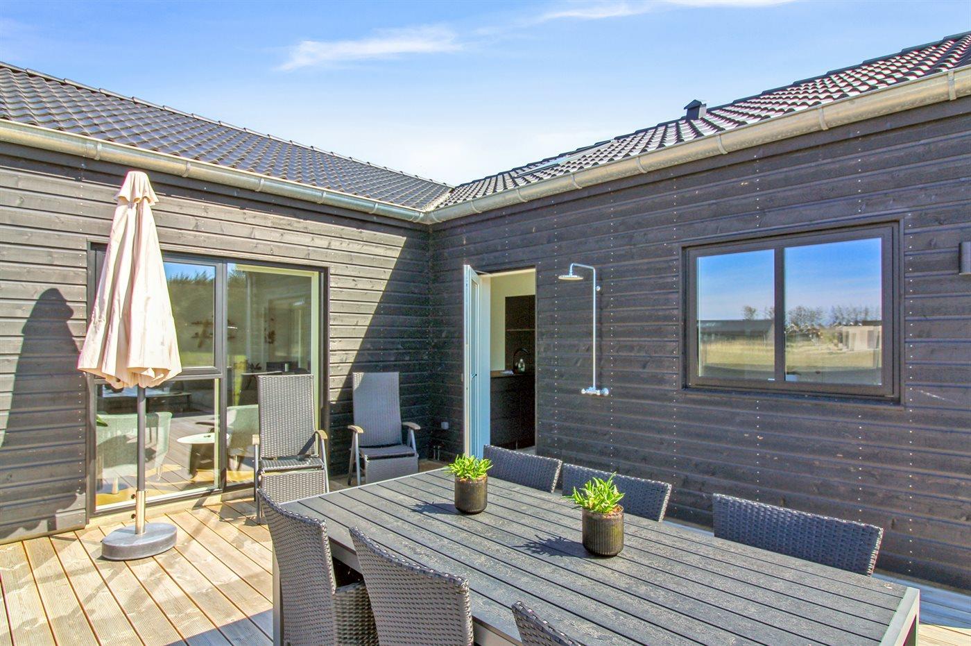 Sommerhuset egner sig til 12 personer samt 1 barn op til 3 år. Ferieboligen er på 155 m² og er bygget i 2022. Det er ikke tilladt at medbringe husdyr. Hele ferieboligen har gulvvarme. Ferieboligen har vaskemaskine. Tørretumbler. Frysekapacitet på 100 liter. Til de små er der 1 stk. barnestol.