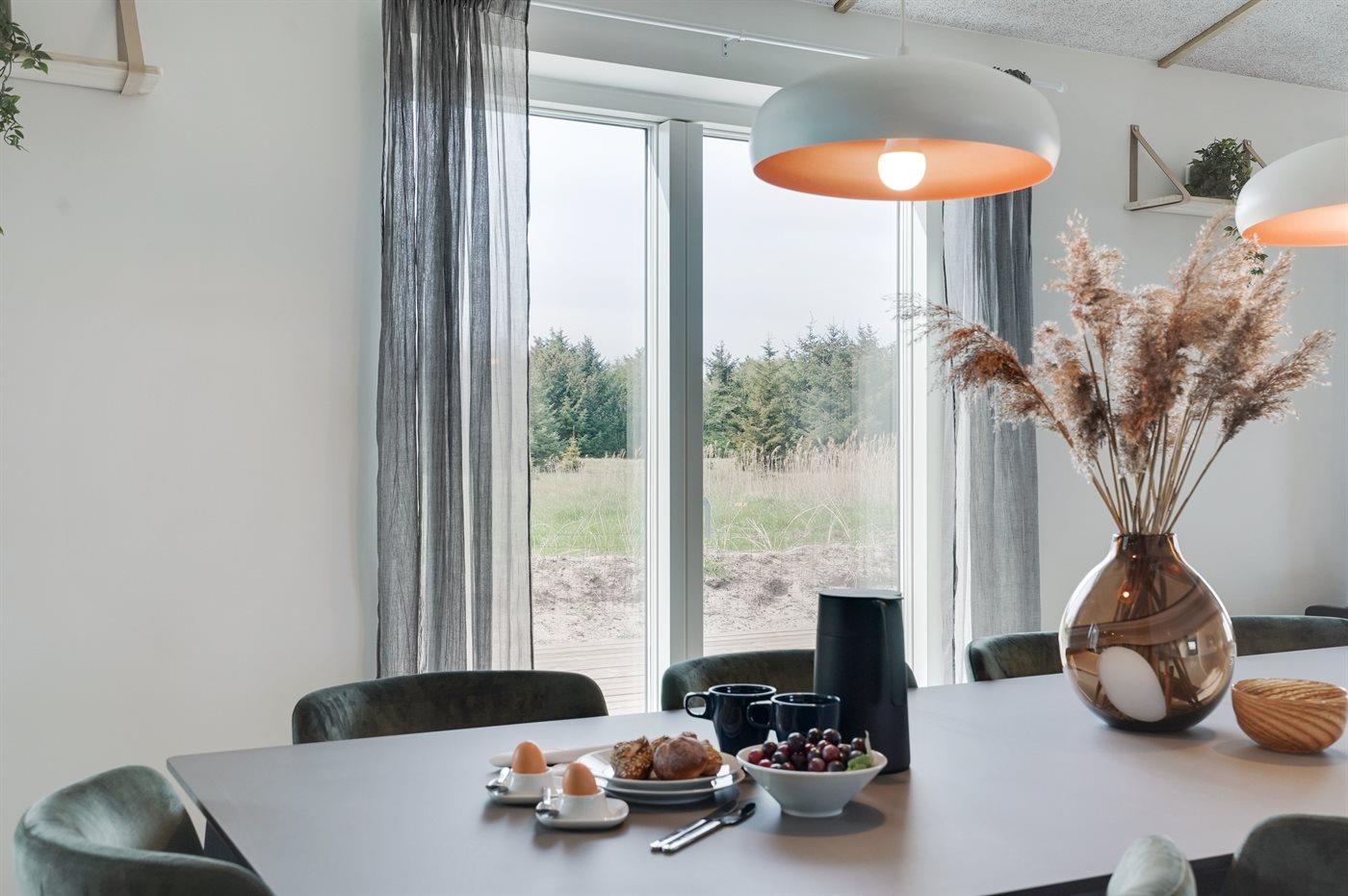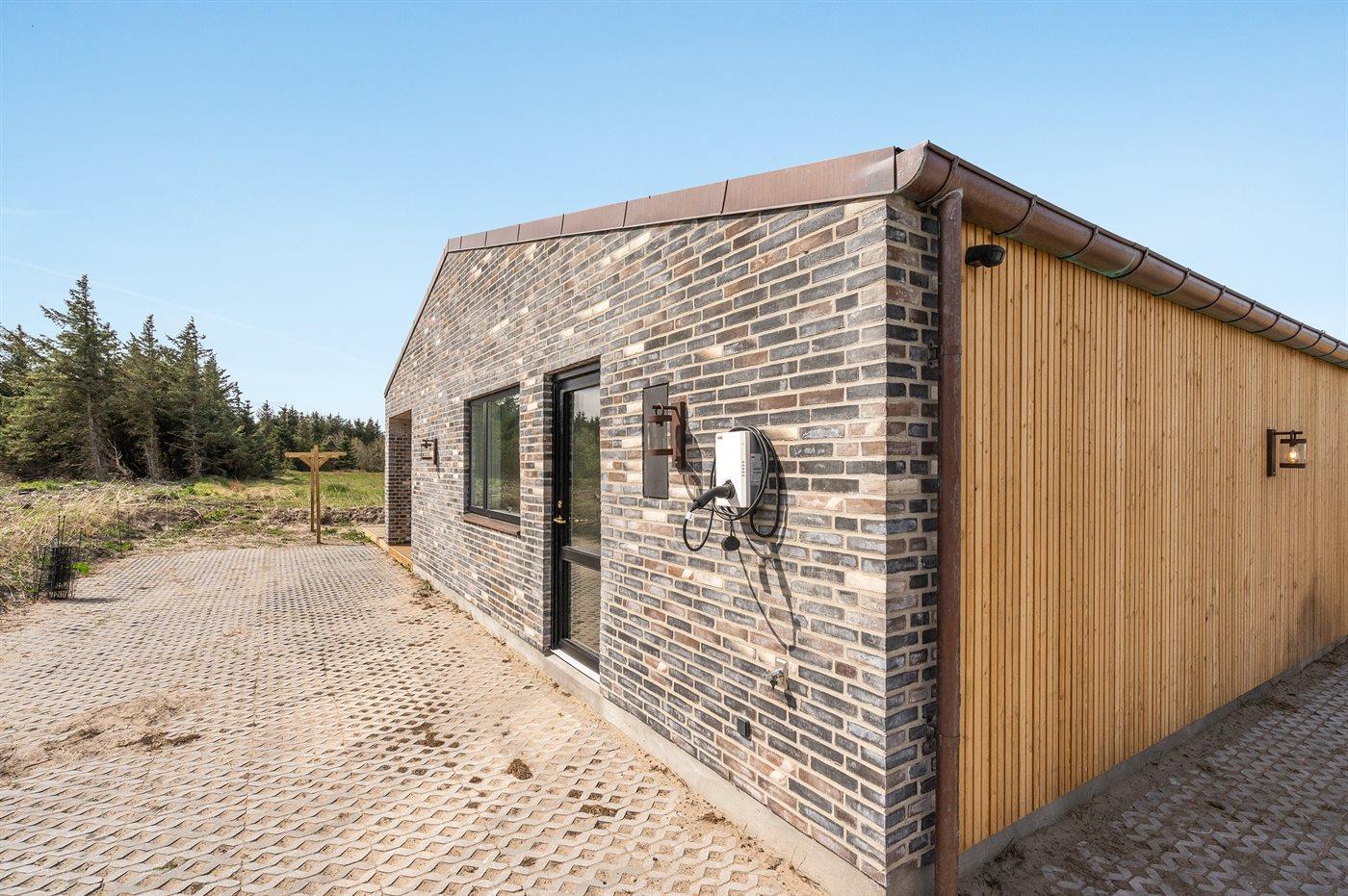 Ferieboligen er beliggende på en 600 m² stor naturgrund. Der er 950 m til havet. Nærmeste forretning er beliggende i en afstand af 800 m. Til ferieboligen hører åbent terrasseareal. Desuden er der 20 m² overdækket terrasse. Der er redskabsrum. Gynge. Rutchebane. Udendørs bruser. Grill til rådighed. Der er installeret stik til opladning af elbil. Parkering ved ferieboligen.