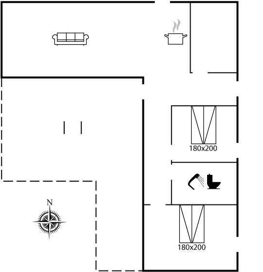 Der er i alt 2 soveværelser. Sovepladserne fordeler sig på: 4 sovepladser i dobbeltsenge.