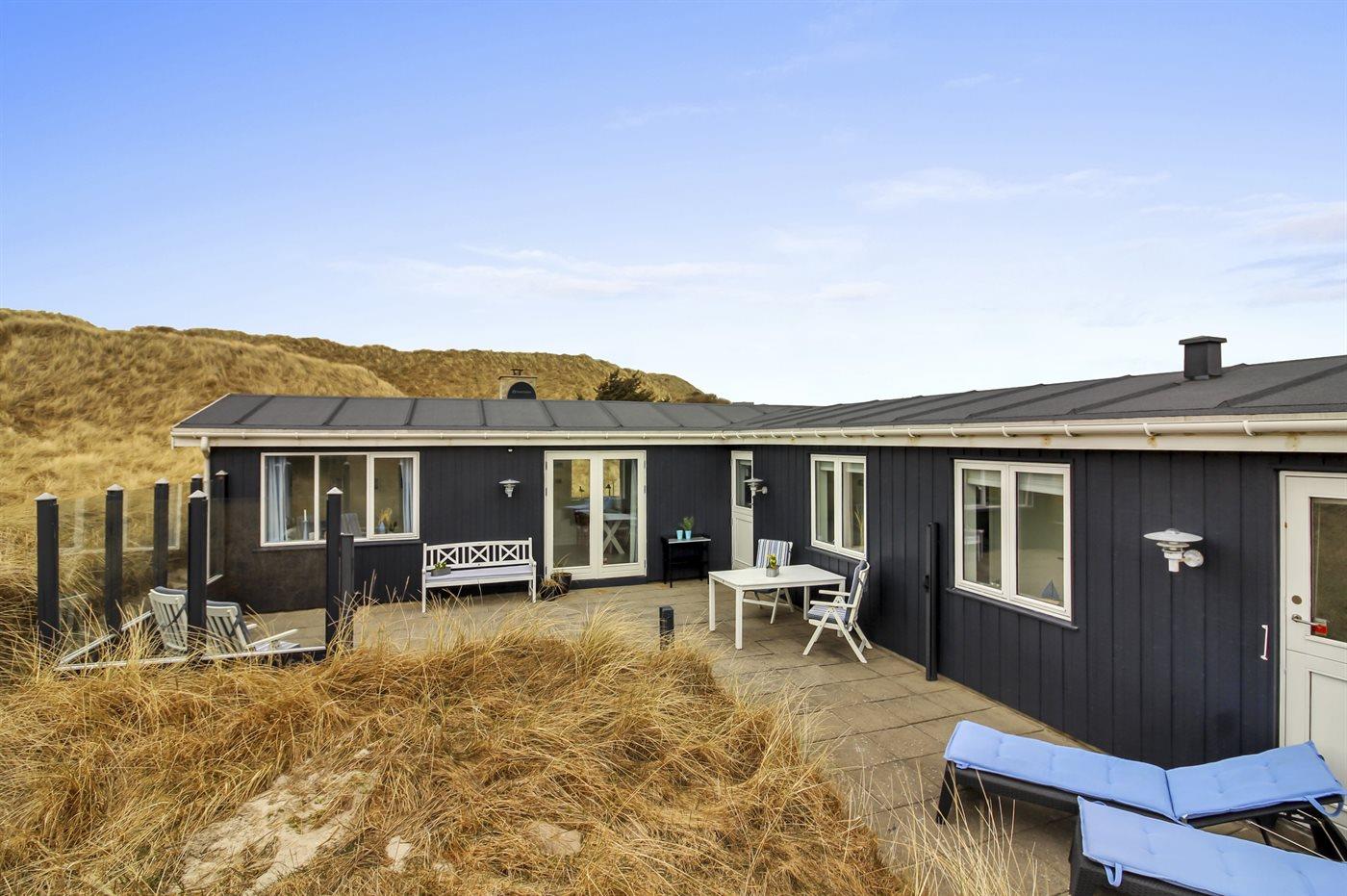 Hyggeligt sommerhus i første klitrække til Løkken strand med stor naturgrund og moderne faciliteter.