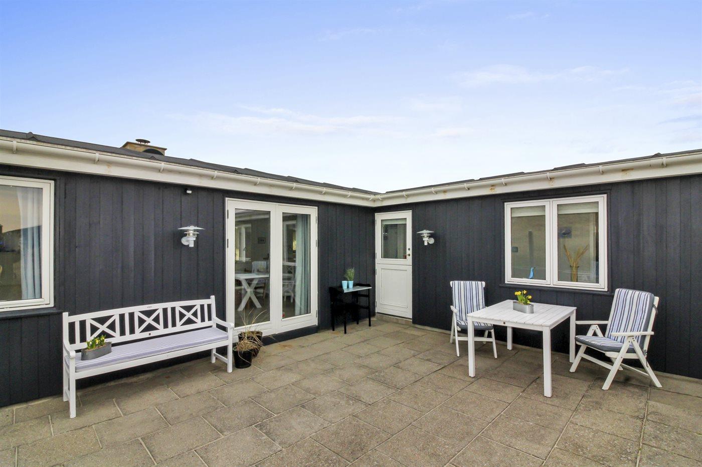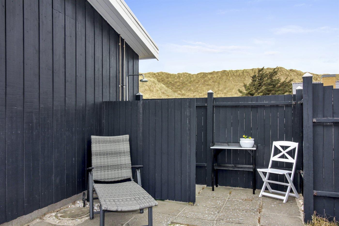 Ferieboligen er beliggende på en 2482 m² stor naturgrund. Der er 150 m til havet. Nærmeste forretning er beliggende i en afstand af 1500 m. Til ferieboligen hører 90 m² terrasseareal. Udendørs bruser. Grill til rådighed. Parkering ved ferieboligen.