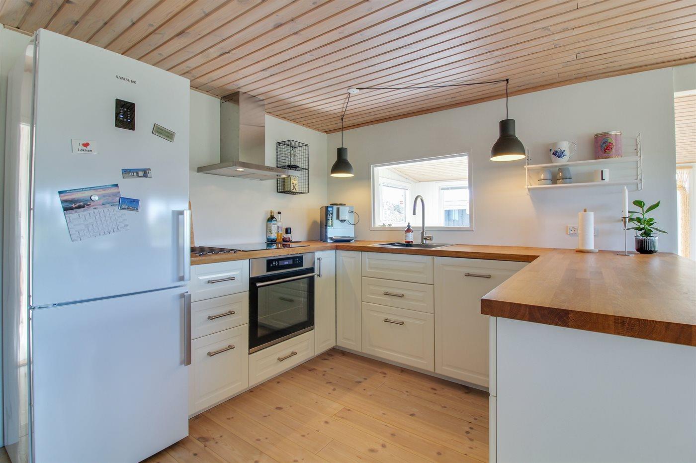 Køkkenet er udstyret med 1 køleskab. Der er 4 induktionskogeplader, varmluftovn, mikrobølgeovn samt opvaskemaskine.