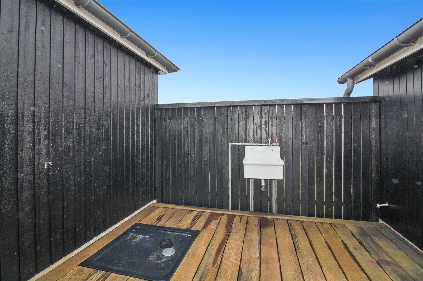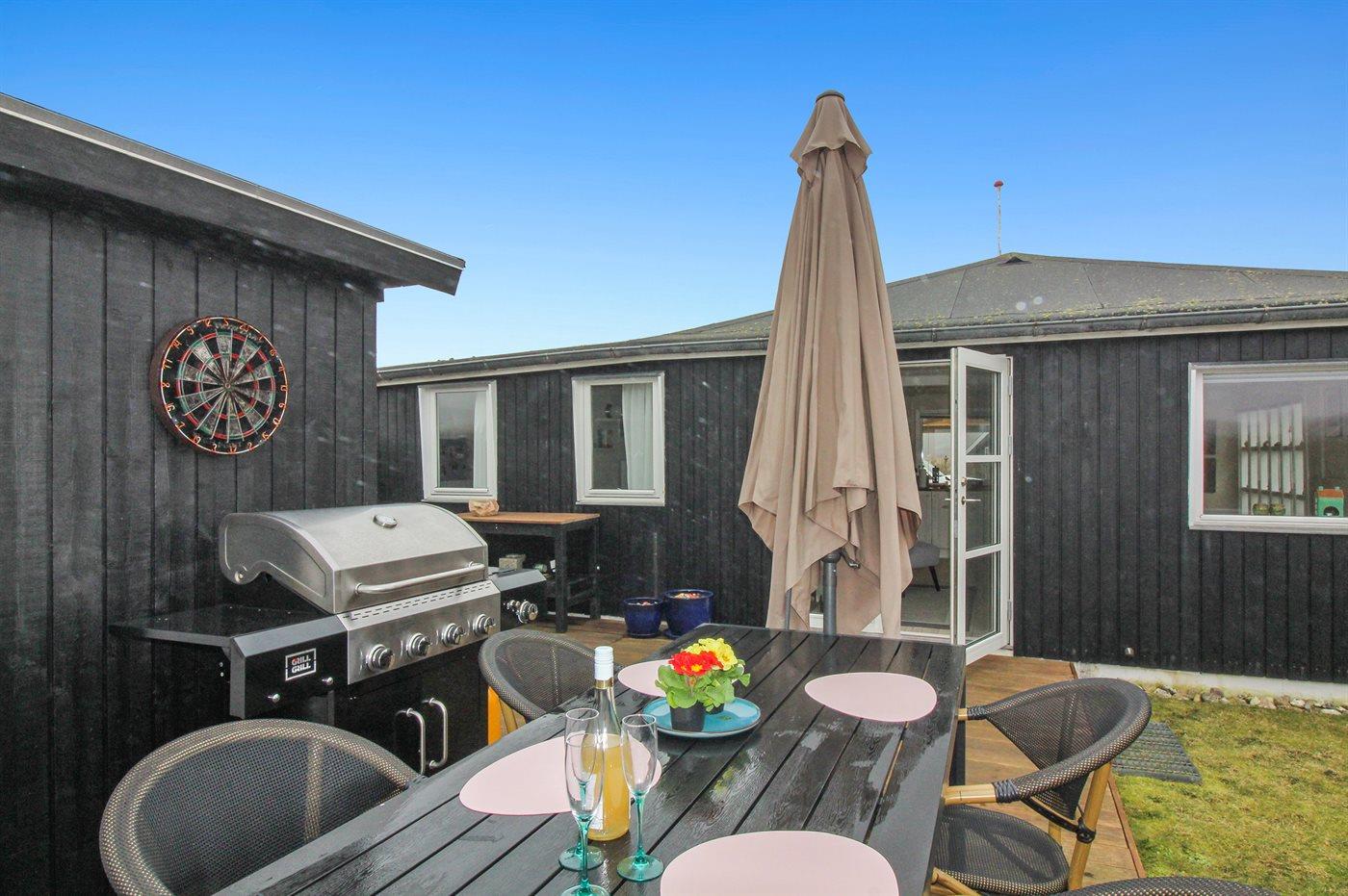 Ferieboligen er beliggende på en 2500 m² stor naturgrund. Der er 300 m til havet. Nærmeste forretning er beliggende i en afstand af 1900 m. Til ferieboligen hører åbent terrasseareal. Desuden er der overdækket terrasse. Grill til rådighed. Parkering ved ferieboligen.