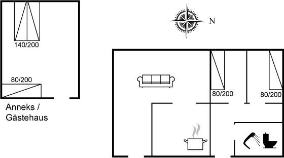 Der er i alt 3 soveværelser. Sovepladserne fordeler sig på: 1 sovepladser i dobbeltsenge. 3 sovepladser i enkeltsenge. 2 af disse sovepladser befinder sig i anneks.