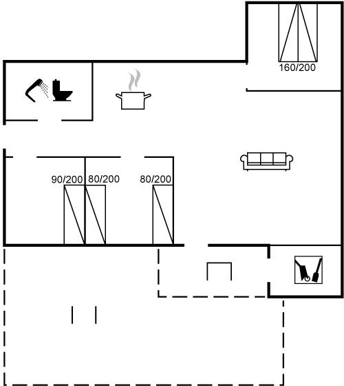 Der er i alt 3 soveværelser. Sovepladserne fordeler sig på: 2 sovepladser i dobbeltseng. 3 sovepladser i enkeltsenge.