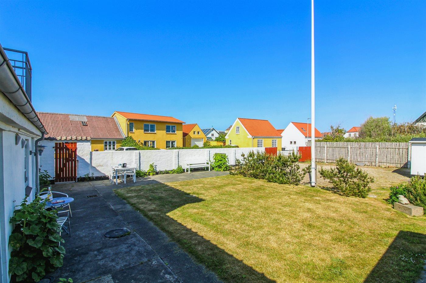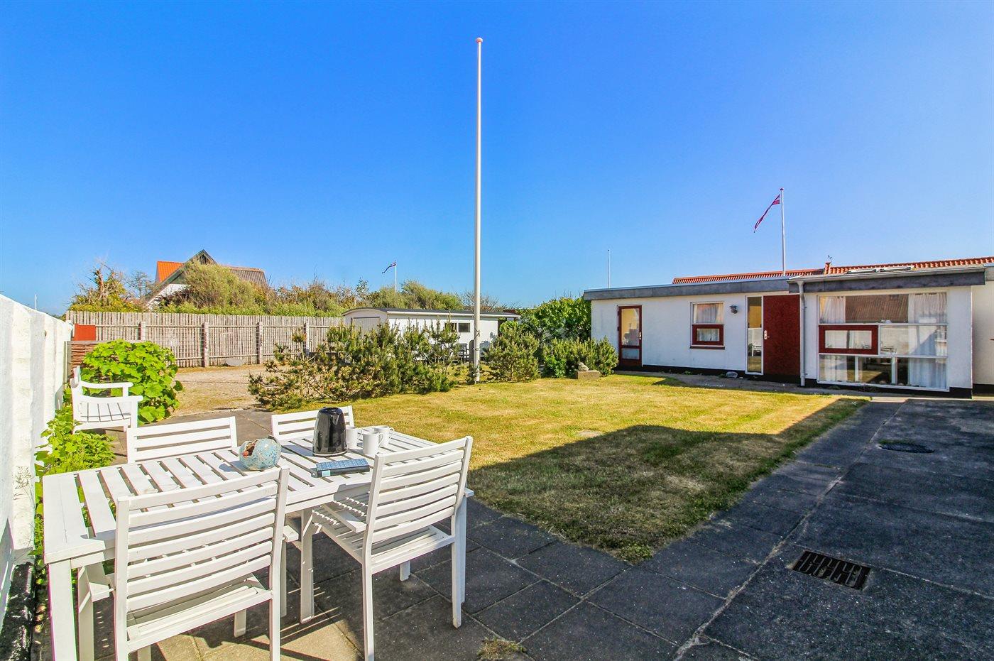 Ferieboligen er beliggende på en 517 m² stor havegrund. Grunden er indhegnet. Der er 350 m til havet. Nærmeste forretning er beliggende i en afstand af 300 m. Til ferieboligen hører åbent terrasseareal. Grill til rådighed. Parkering ved ferieboligen.