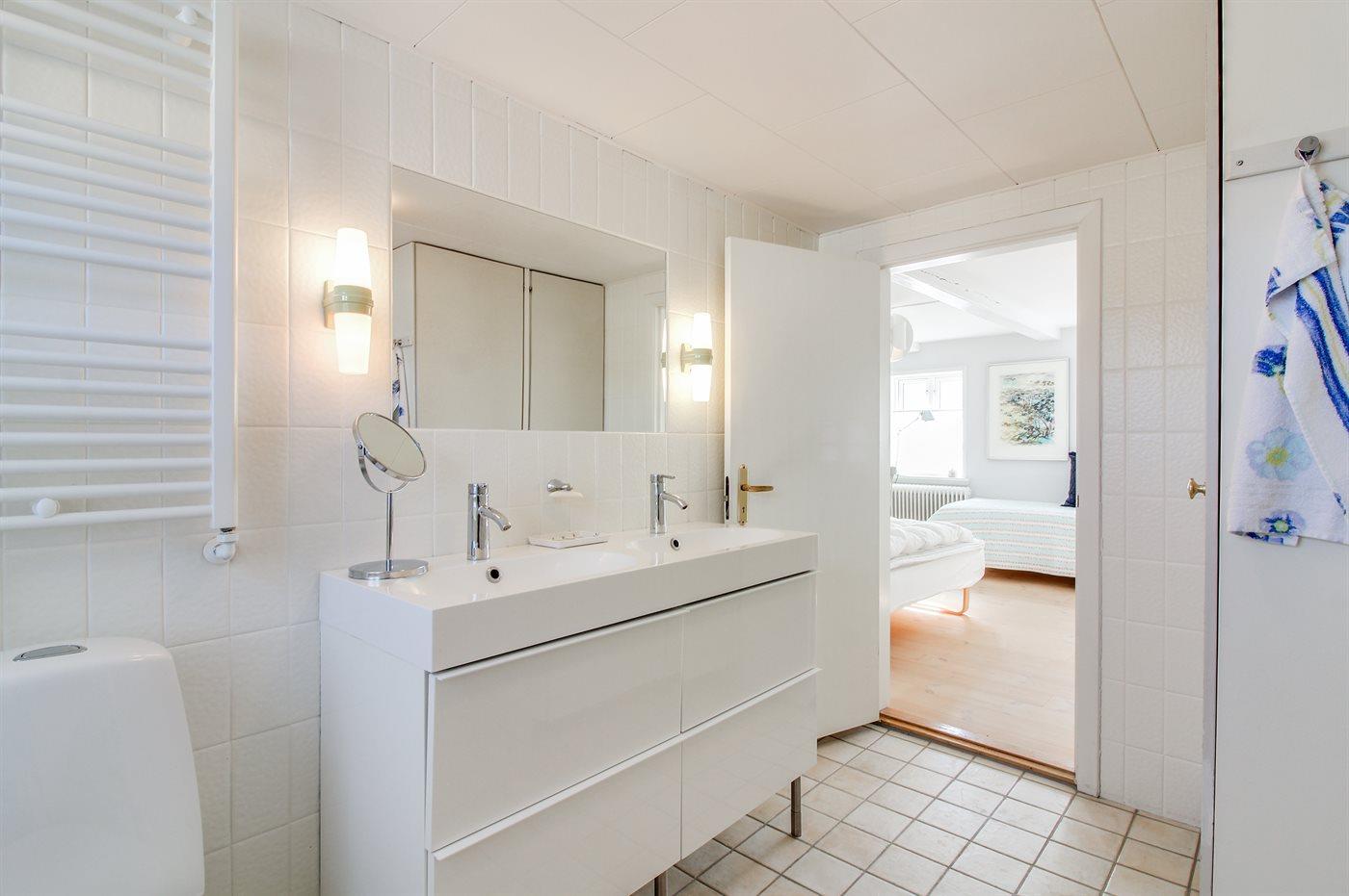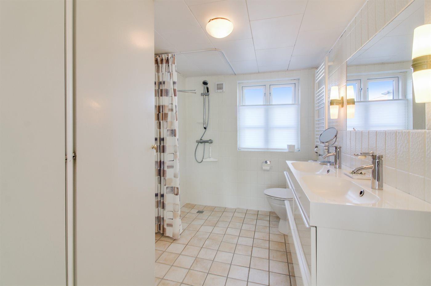 Der er 1 badeværelse med bruseniche og 2 toiletter, heraf 1 gæstetoilet. Der er gulvvarme på 1 badeværelse.
