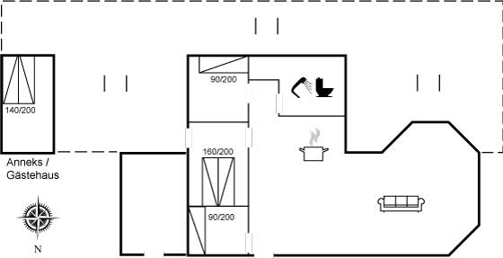 Der er i alt 4 soveværelser. Sovepladserne fordeler sig på: 4 sovepladser i dobbeltsenge. 2 sovepladser i enkeltsenge.- 2 af disse sovepladser befinder sig i anneks.