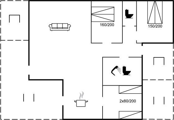 Der er i alt 3 soveværelser. Sovepladserne fordeler sig på: 4 sovepladser i dobbeltsenge. 2 sovepladser i enkeltsenge.