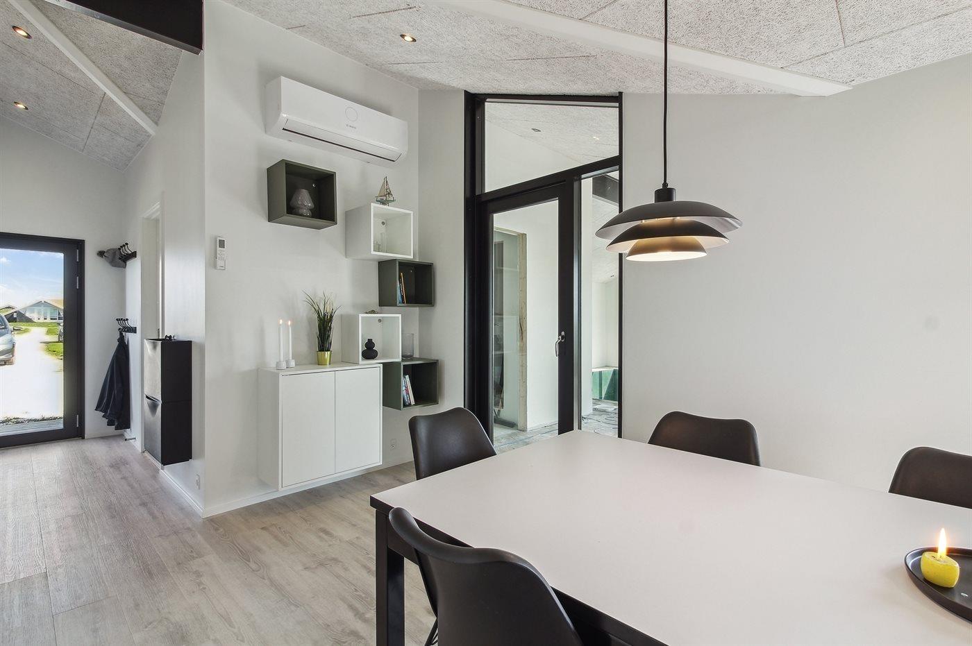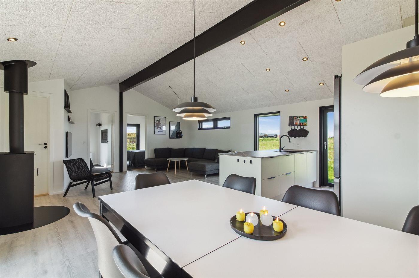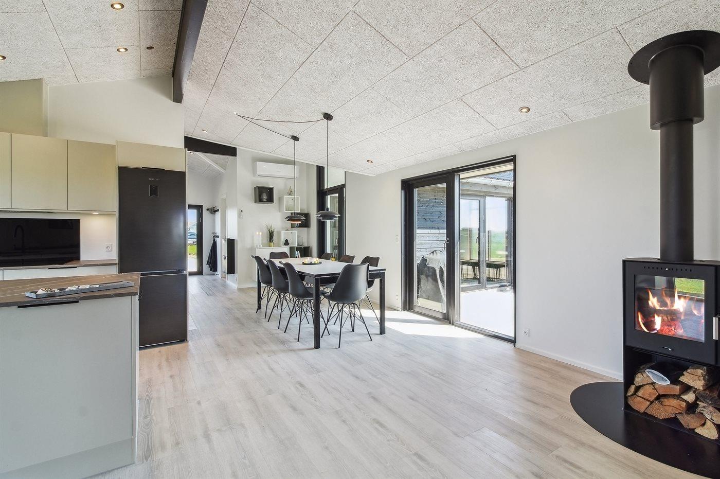 Køkkenet er udstyret med 1 køleskab. Der er 4 induktionskogeplader, varmluftovn samt opvaskemaskine.