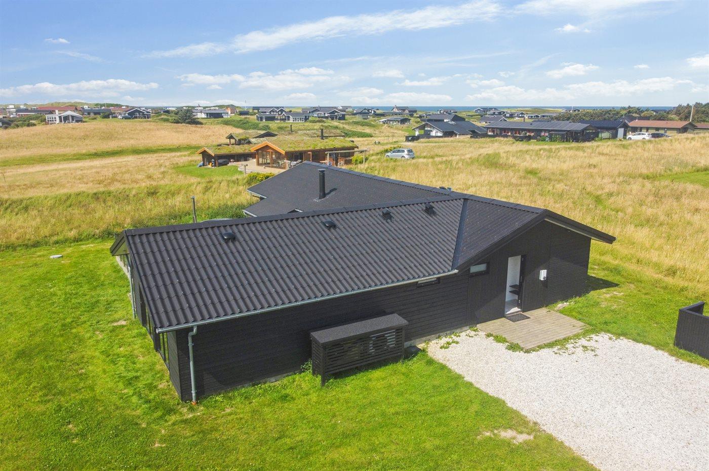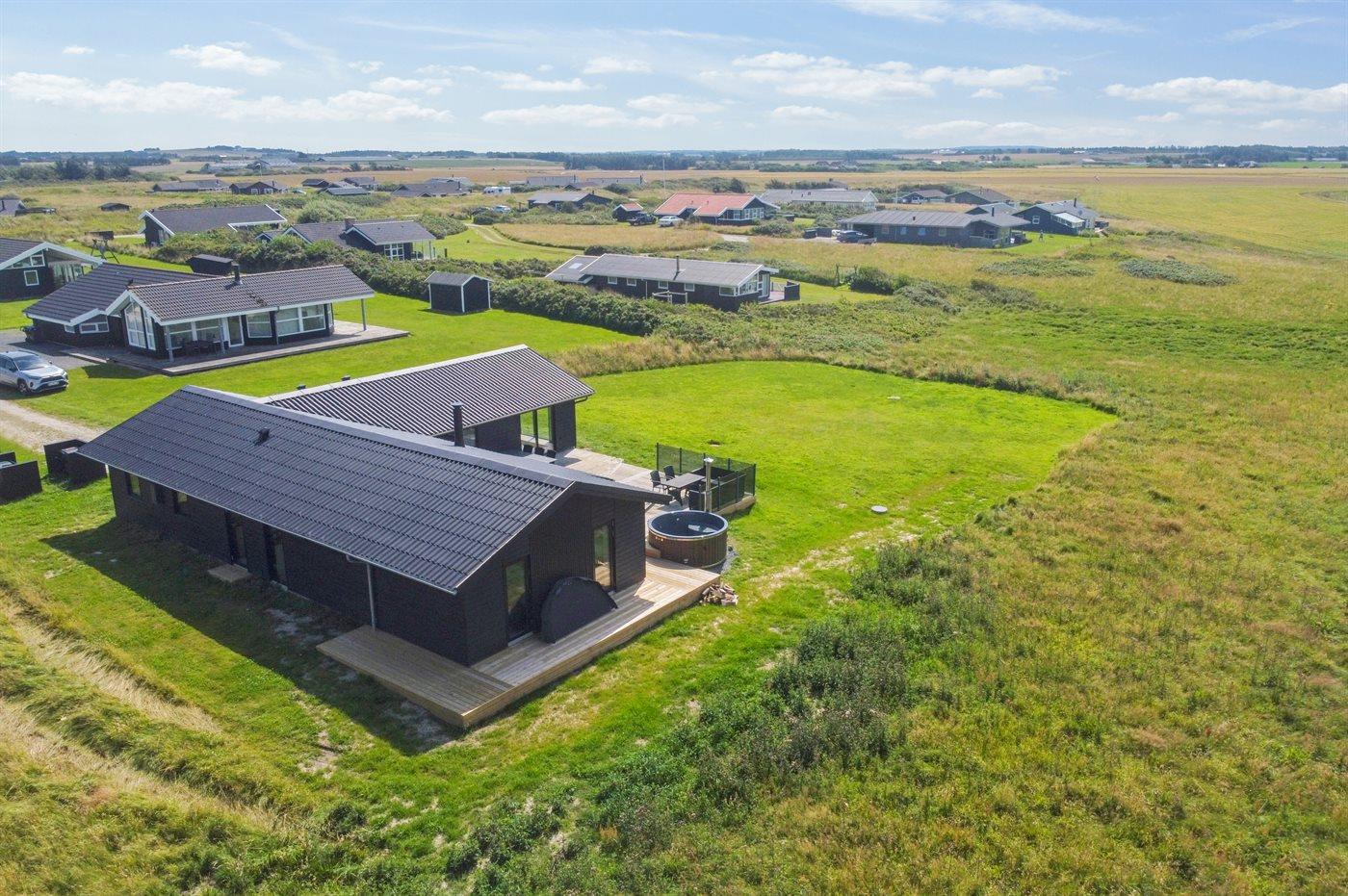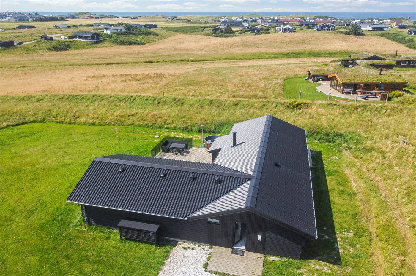 Ferieboligen er beliggende på en 1260 m² stor naturgrund. Der er 500 m til havet. Nærmeste forretning er beliggende i en afstand af 2000 m. Der er en golfbane i en afstand af 5500 m. Til ferieboligen hører åbent terrasseareal. Der er redskabsrum. Grill til rådighed. Der er installeret stik til opladning af elbil. Type 2 stik. Parkering ved ferieboligen.