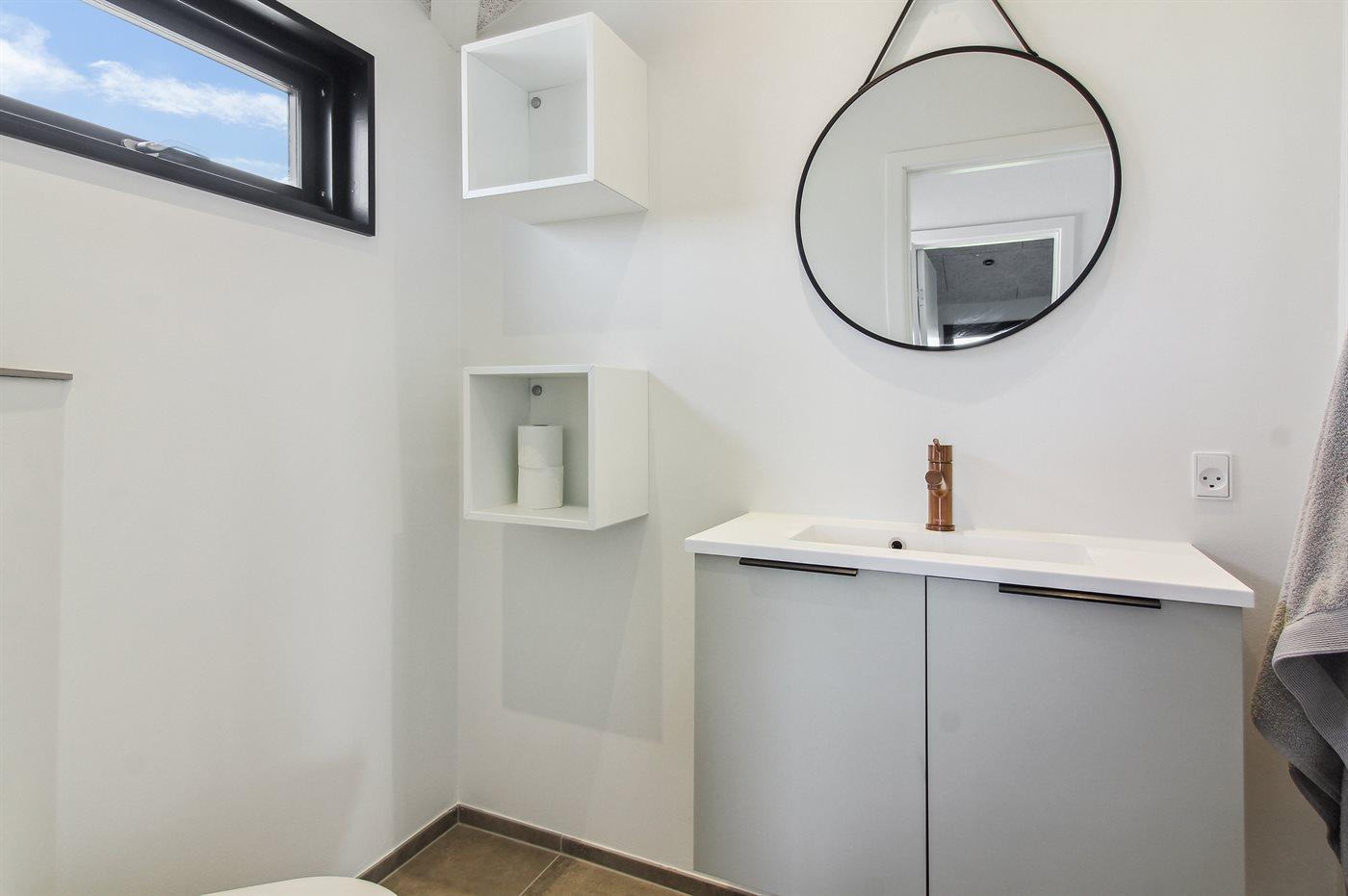 Der er 2 badeværelser med bruseniche og 2 toiletter. Der er gulvvarme på 2 badeværelser.