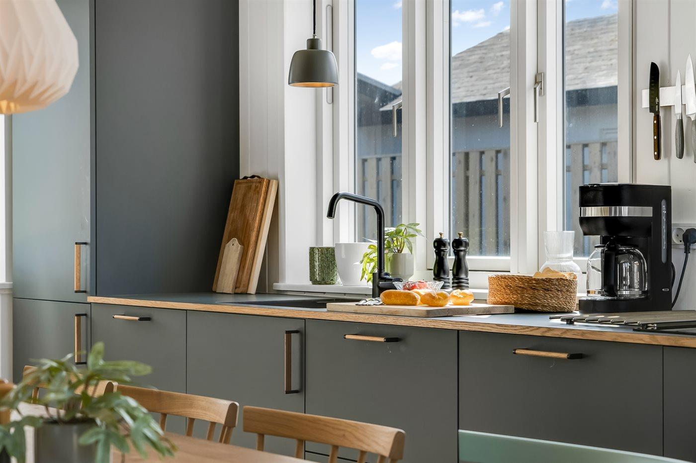 Køkkenet er udstyret med 1 køleskab. Der er 4 induktionskogeplader, varmluftovn samt opvaskemaskine.