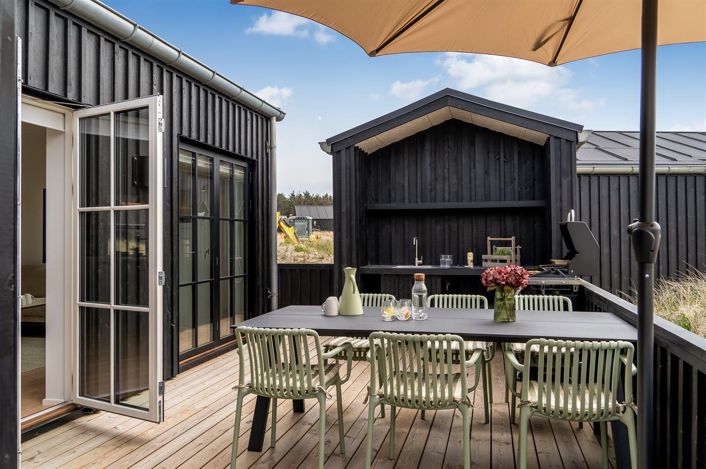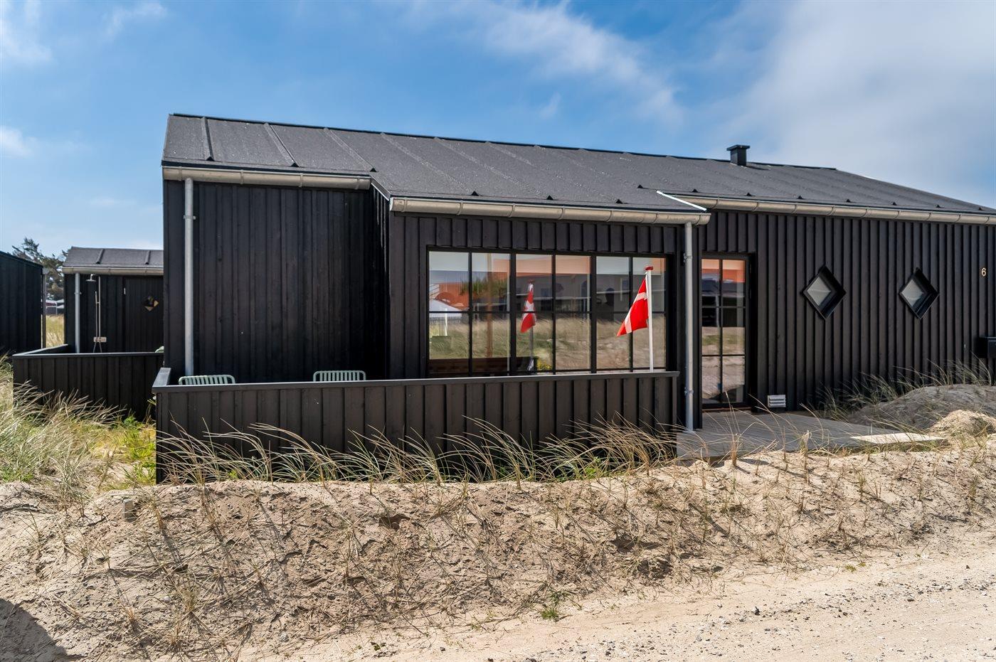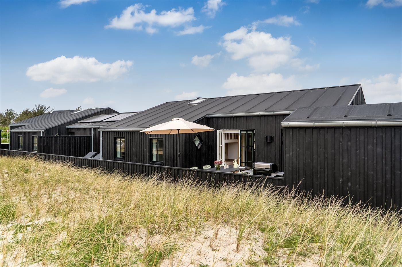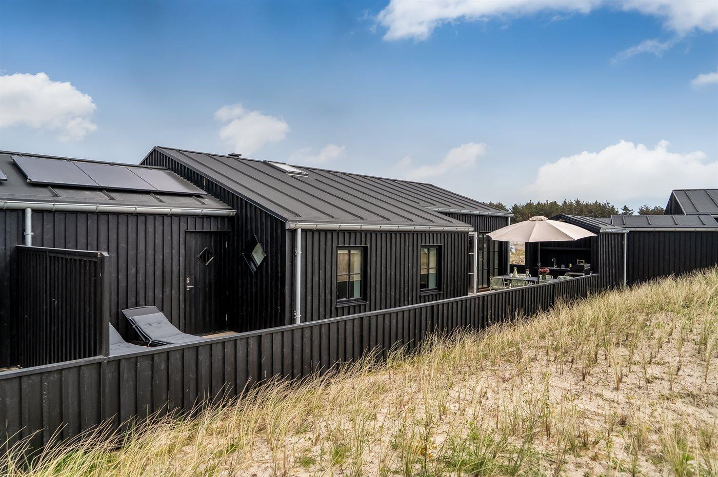 Ferieboligen er beliggende på en 261 m² stor klitgrund. Der er 500 m til havet. Nærmeste forretning er beliggende i en afstand af 500 m. Til ferieboligen hører åbent terrasseareal. Der er redskabsrum. Udendørs bruser. Der er mulighed for at tilberede maden udendørs i udekøkkenet. Grill til rådighed. Der er carport til rådighed. Der er installeret stik til opladning af elbil. Type 2 stik. Med 11 kW ladeeffekt. Parkering ved ferieboligen.