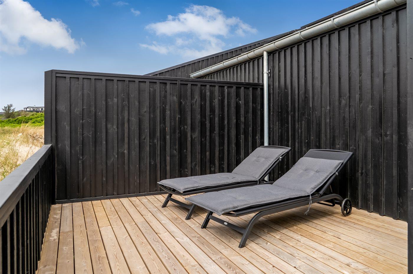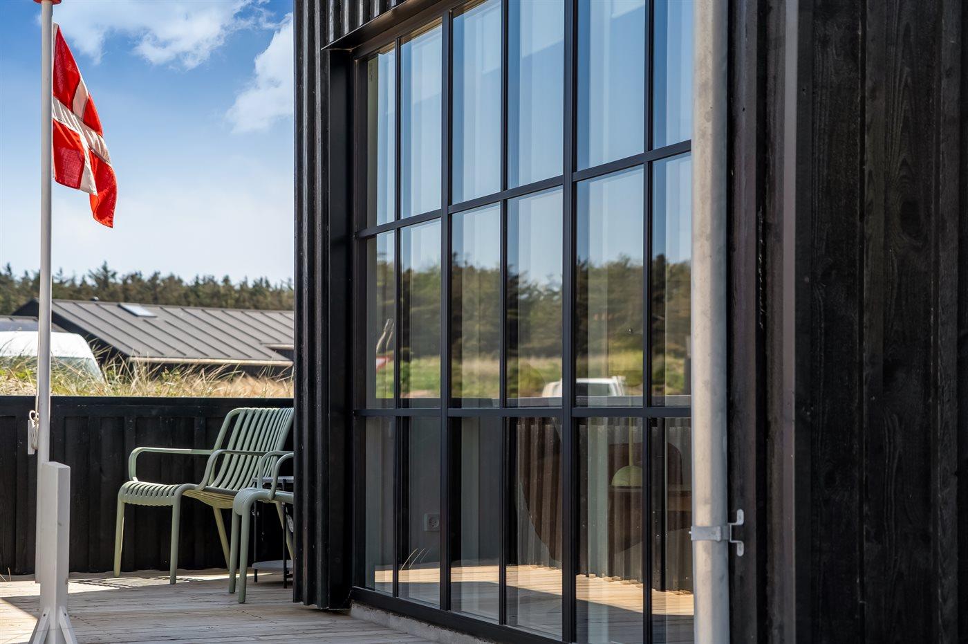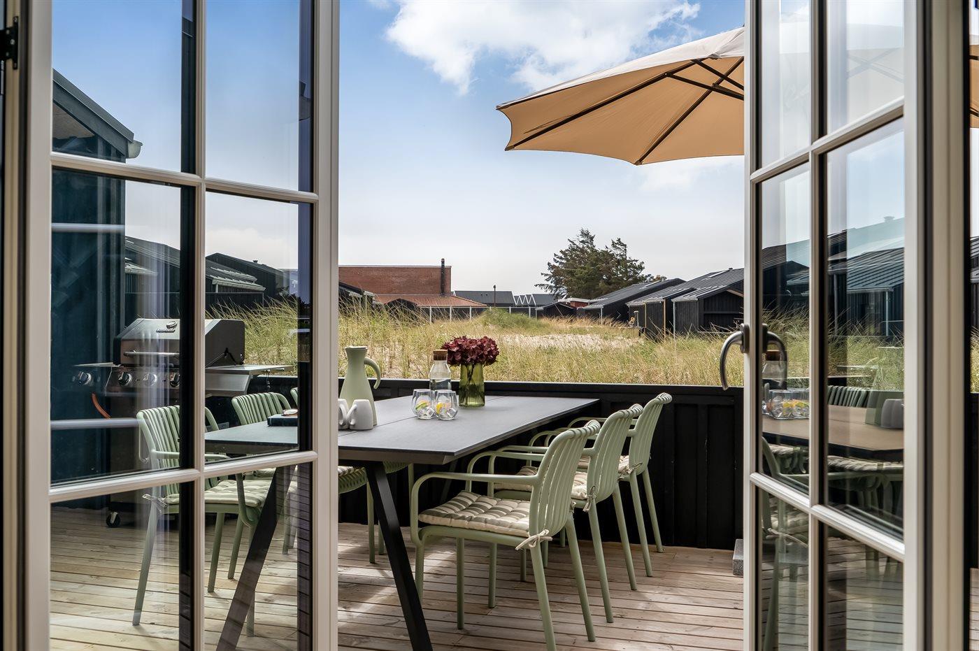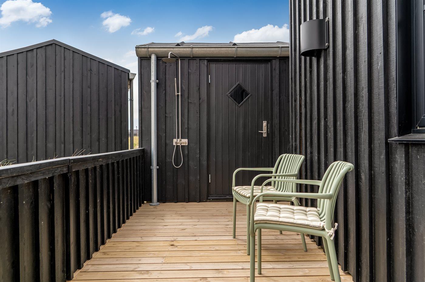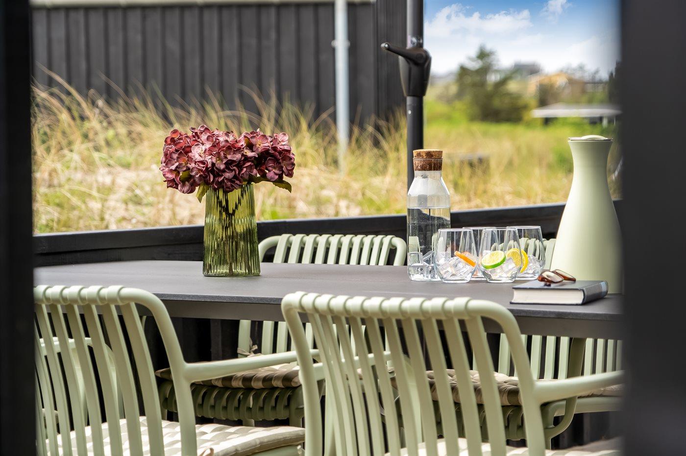 Ferieboligen er beliggende på en 261 m² stor klitgrund. Der er 500 m til havet. Nærmeste forretning er beliggende i en afstand af 500 m. Til ferieboligen hører åbent terrasseareal. Der er redskabsrum. Udendørs bruser. Der er mulighed for at tilberede maden udendørs i udekøkkenet. Grill til rådighed. Der er carport til rådighed. Der er installeret stik til opladning af elbil. Type 2 stik. Med 11 kW ladeeffekt. Parkering ved ferieboligen.