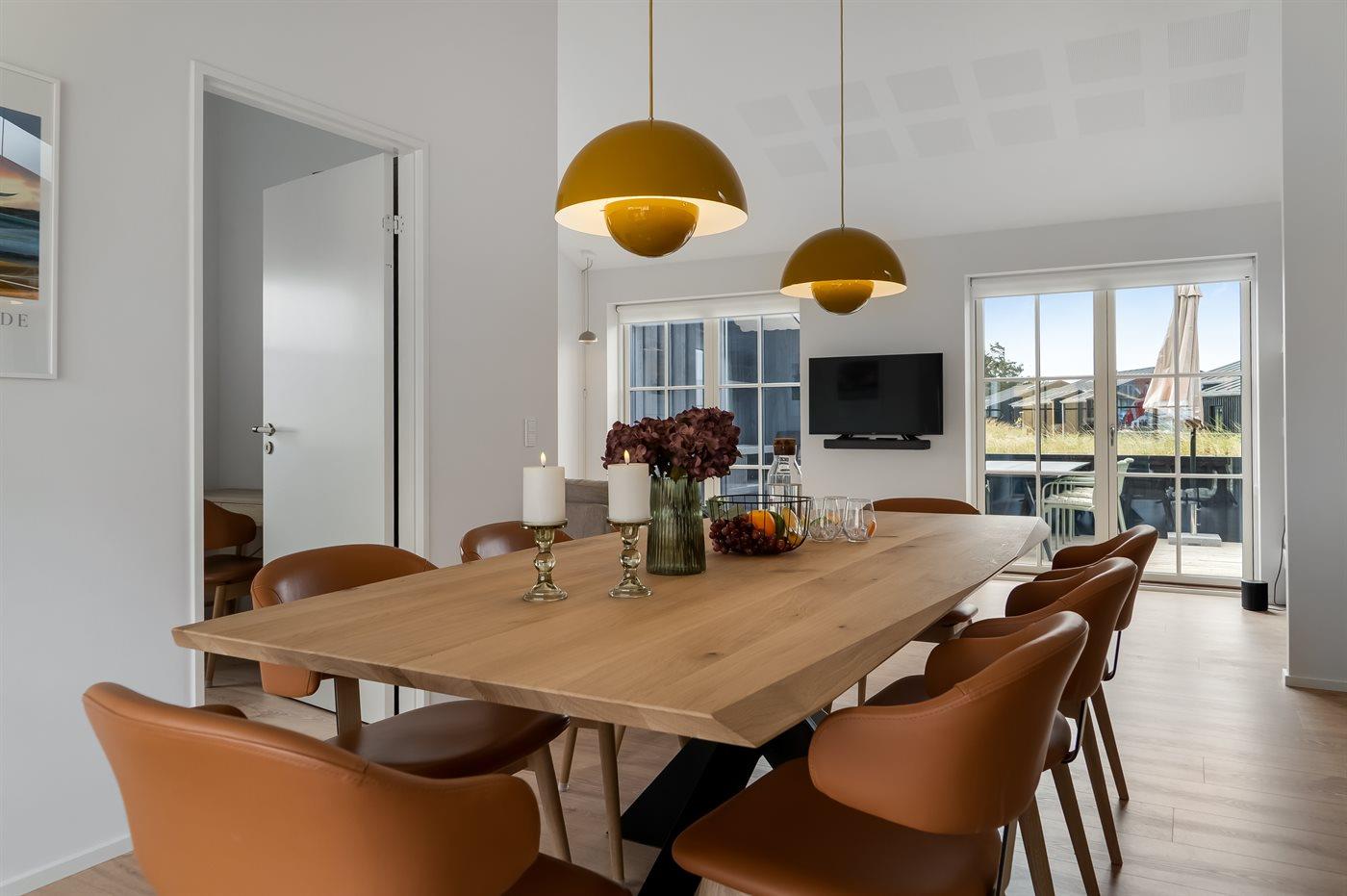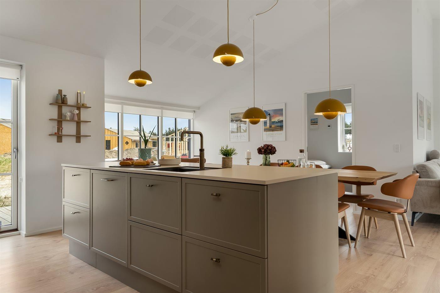 Køkkenet er udstyret med 1 køleskab. Der er 4 induktionskogeplader, varmluftovn, mikrobølgeovn, Airfryer samt opvaskemaskine.