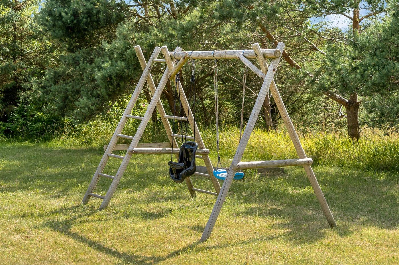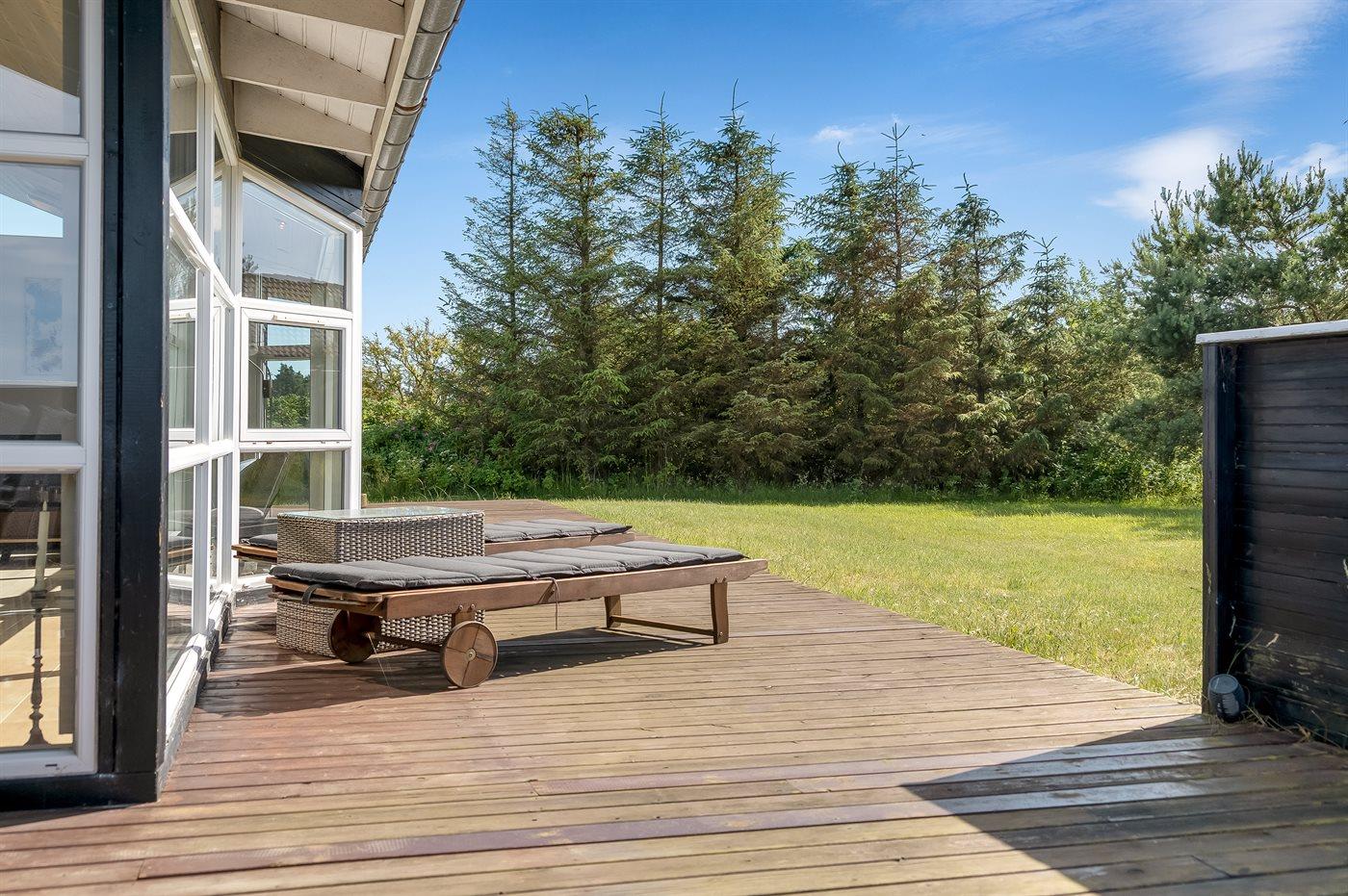 Ferieboligen er beliggende på en 2550 m² stor naturgrund. Der er 800 m til havet. Nærmeste forretning er beliggende i en afstand af 2000 m. Til ferieboligen hører åbent terrasseareal. Desuden er der overdækket terrasse. Der er redskabsrum. Gynge. Sandkasse. Bålsted. Grill til rådighed.