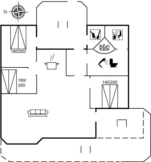 Sommerhuset indeholder tre soveværelser - alle med dobbeltsenge. Husets hemse har to madrasser og giver mulighed for ekstra sovepladser.