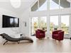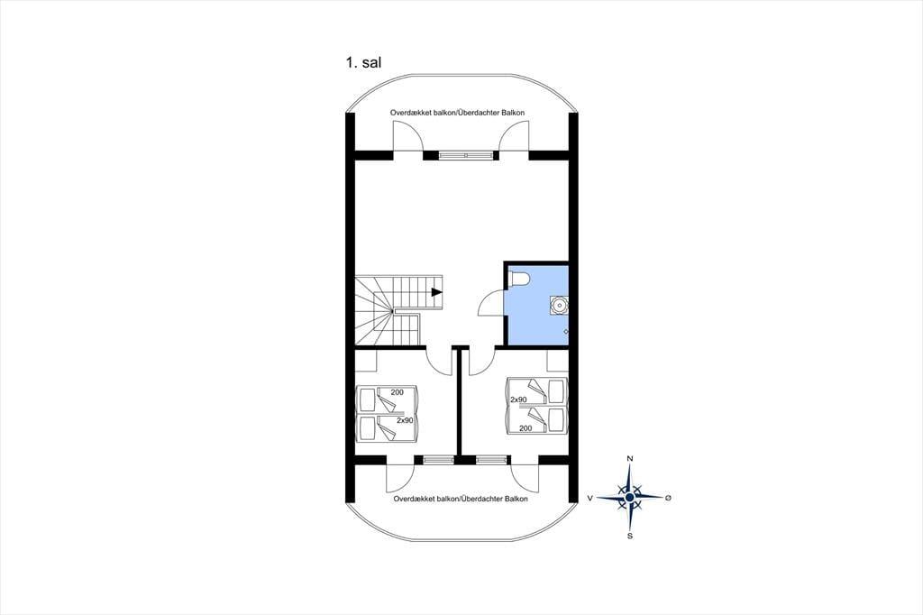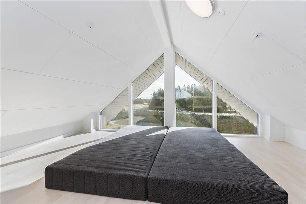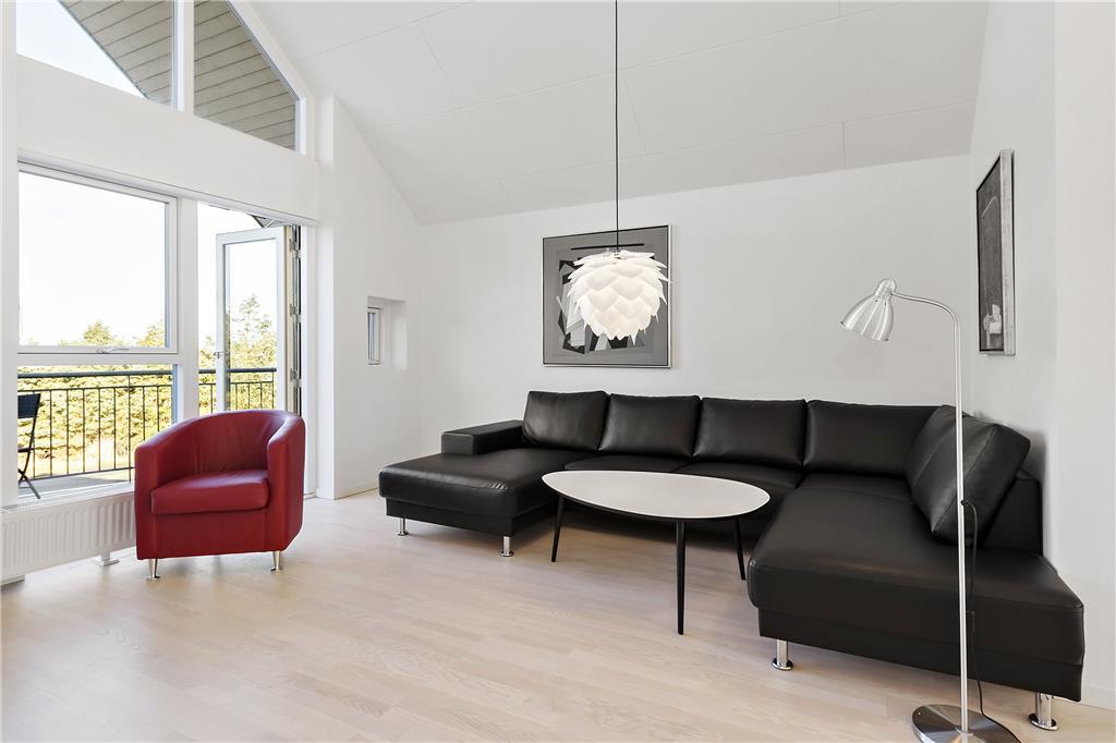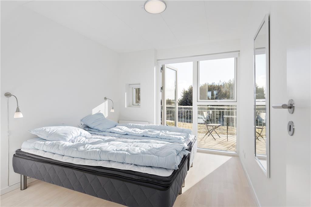 Det moderne sommerhus er opført i to plan og rummer alle de faciliteter, du behøver for en uforglemmelig ferie. I stueetagen byder husets store og lyse vinduespartier ind til en rummelig og hyggelig stue, hvor der er masser af plads til afslapning foran brændeovnen. Gulvvarme sikrer en behagelig temperatur året rundt, og i det veludstyrede køkken er der rig mulighed for at tilberede lækre måltider med lokale råvarer. Sommerhuset har tre gode værelser, som giver god plads til op til seks personer, og to moderne badeværelser, hvoraf det ene er med vaskemaskine og tørretumbler. Fra stuen er der direkte adgang til husets store terrasse, hvor du kan nyde solen hele dagen lang, og fra balkonens højde kan du få et smukt udsyn over området.