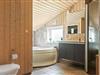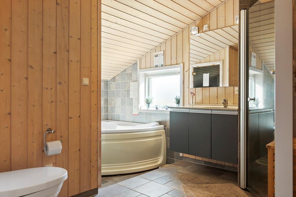 Dette arkitekttegnede sommerhus er indrettet med stor sans for detaljer, og du vil straks mærke den stemningsfulde atmosfære, når du træder indenfor. Huset rummer tre indbydende soveværelser, hvoraf et er placeret i det separat anneks, som også rummer et badeværelse – perfekt til lidt ekstra privatliv. Hovedhuset byder på et luksuriøst badeværelse med både spabad og sauna, så du kan forkæle dig selv efter en lang dag. Derudover er der et gæstetoilet, hvilket gør det nemt for flere at dele huset. Køkkenet er åbent og funktionelt, og med direkte adgang til stuen bliver det let at socialisere og dele gode stunder, mens du tilbereder feriens måltider.