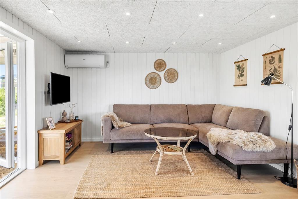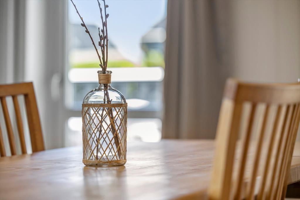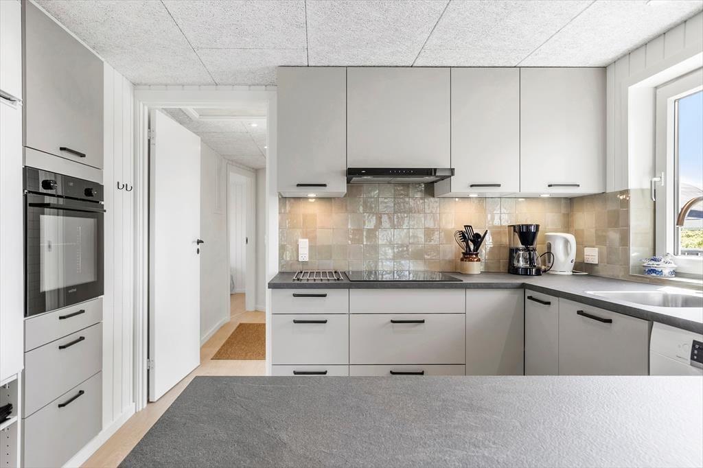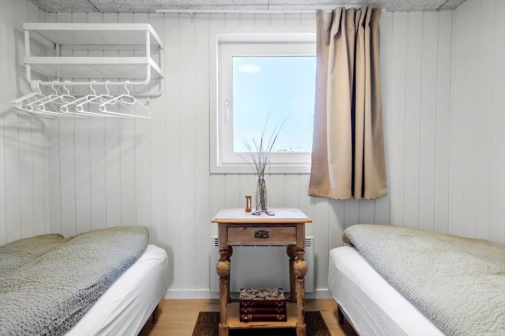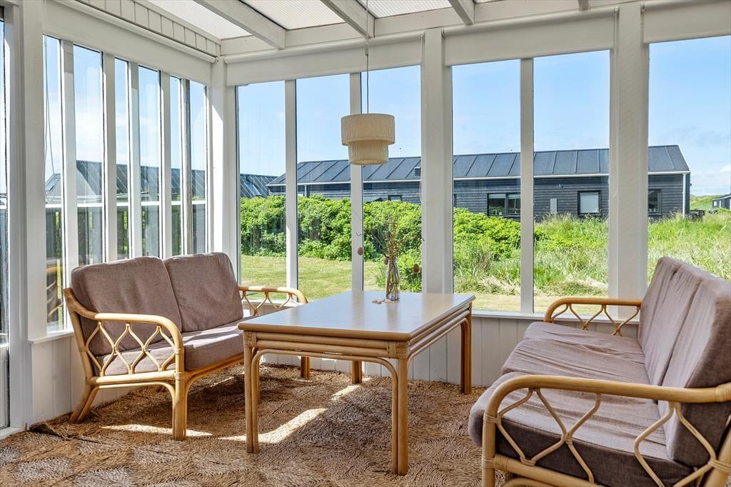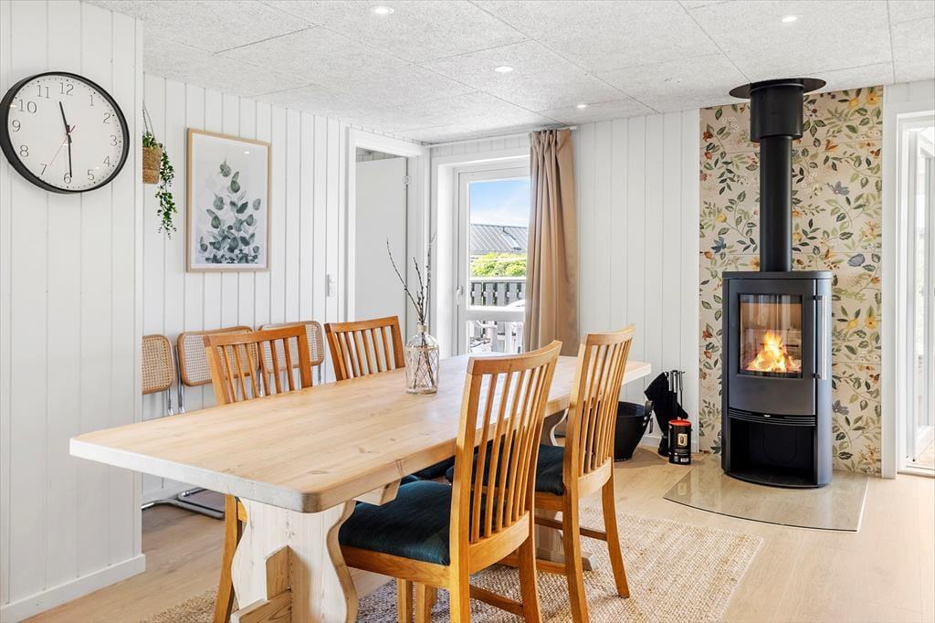 Sommerhuset byder på en klassisk indretning med masser af hygge. I stuen, hvor du kan varme dig foran den knitrende brændeovn, er der god plads til afslapning efter en aktiv dag ved stranden. Et veludstyret køkken indbyder til fælles madlavning, og den åbne forbindelse til stuen sikrer, at samtalen altid er i centrum. I sommerhuset findes tre gode værelser, som alle er indrettet med komfort for øje, samt et badeværelse og et gæstetoilet. Udestuen med glasvinduer giver et fantastisk udsyn til den omkringliggende natur, og her kan du virkelig få en fornemmelse af at være i ét med landskabet, uanset om du er ude eller inde.