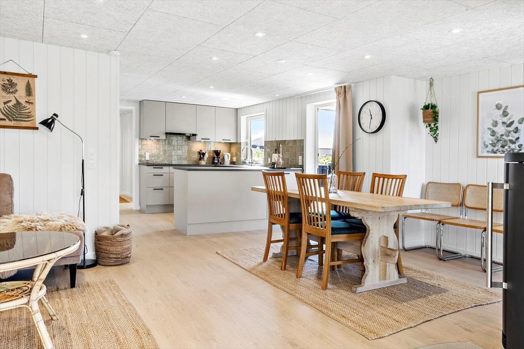 Sommerhuset ligger i kort gåafstand fra den brede sandstrand og det brusende Vesterhav, hvor du kan tage en dukkert i de forfriskende bølger eller nyde lange gåture langs kysten. Området er perfekt til naturoplevelser, og du kan nemt tage på udflugt til den nærliggende ferieby Løkken, som byder på hyggelige butikker og caféer. Hvis du er på jagt efter kulturelle oplevelser, er der flere kunstgallerier og lokale seværdigheder i området, som virkelig er med til at sætte prikken over i'et på en vellykket ferie.